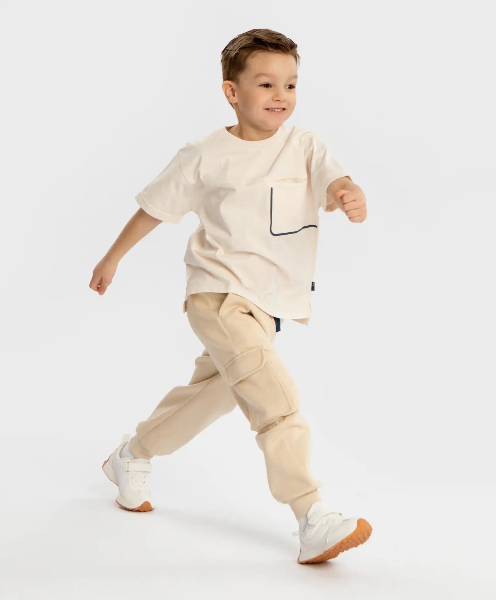 Tricoul cu mânecă scurtă și buzunar pentru băieți va adăuga prospețime garderobei. Nuanța sa, asemănătoare unei bezele ușoare sau unei creme de unt, este un trend al sezonului. Modelul de la Button Blue, realizat dintr-un tricot de grosime medie, este moale, delicat și plăcut la atingere. Decolteul clasic rotund face ca tricoul să fie ușor de purtat. Tricoul de la Button Blue este elastic, dar își menține forma și este ușor de întreținut. Mânecile scurte cu tiv asigură confort termic, iar croiala lejeră și linia umerilor lăsați oferă libertate de mișcare pentru orice tip de siluetă. Buzunarul frontal neobișnuit este accentuat printr-o cusătură contrastantă. Acest design minimalist conferă modelului un aspect modern și interesant. Tricoul versatil este potrivit pentru orice ocazie – plimbări, picnicuri, vizite, activități sportive. Respectați instrucțiunile de îngrijire indicate pe eticheta produsului.