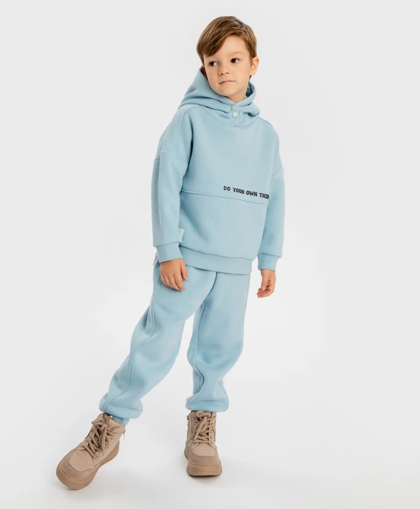 Hanorac căptușit cu glugă și imprimeu pentru băiat, într-o nuanță delicată de albastru. Modelul de la Button Blue este confecționat din French Terry cu interior pufos. Este dens, călduros și ușor de întreținut. Bumbacul din compoziție face hanoracul respirabil și moale la atingere, iar poliesterul îi conferă durabilitate. Silueta oversize și linia umerilor lăsați îl fac confortabil pentru copii cu diferite tipuri de siluetă. Gluga adâncă, prevăzută cu nasturi, va proteja capul de vânt. Modelul este atât de comod încât orice copil va dori să-l poarte întreaga zi. Manșetele și partea inferioară sunt finisate cu material ripsat elastic. Imprimeul tipografic de pe partea din față adaugă stil și face hanoracul mai interesant. Literele voluminoase, în relief, ies în evidență pe nuanța delicată de albastru. Există și un mic patch jacquard. Acest hanorac fără fermoar se încadrează perfect atât în ținutele casual urbane, cât și în outfiturile sport sau ținutele pentru excursii în aer liber. Urmați recomandările de îngrijire indicate pe eticheta internă.