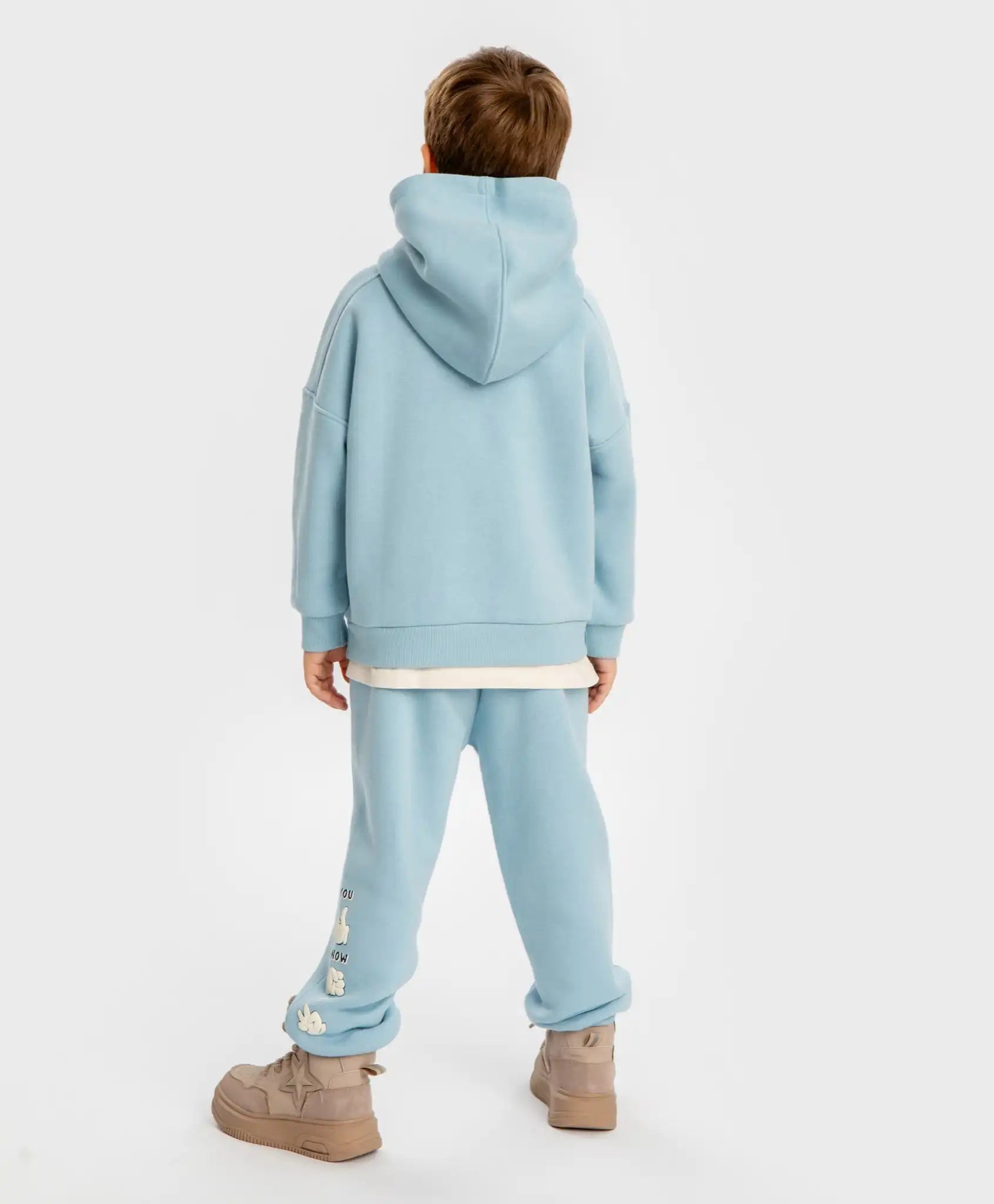Pantaloni jogger căptușiți cu talie elastică și imprimeu volumetric pentru băieți sunt realizați într-o nuanță delicată de albastru. Modelul de la Button Blue este confecționat dintr-un material cu efect de lână, ceea ce îl face foarte cald și incredibil de moale, plăcut la atingere. În acești pantaloni, copilul nu va îngheța în nicio condiție meteo. Talie elastică cu șnur asigură o poziție perfectă. Partea inferioară a pantalonilor este din material ribat, care se potrivește bine, reținând căldura fără a strânge. Croiala este lejeră, oferind confort pentru copiii cu orice tip de siluetă. Are două buzunare frontale, unde mâinile pot fi încălzite sau pot fi păstrate obiecte importante. Deși modelul este de bază, joggerii arată interesant datorită imprimeului volumetric de pe pantaloni. Urmați recomandările de îngrijire indicate pe eticheta cusută.