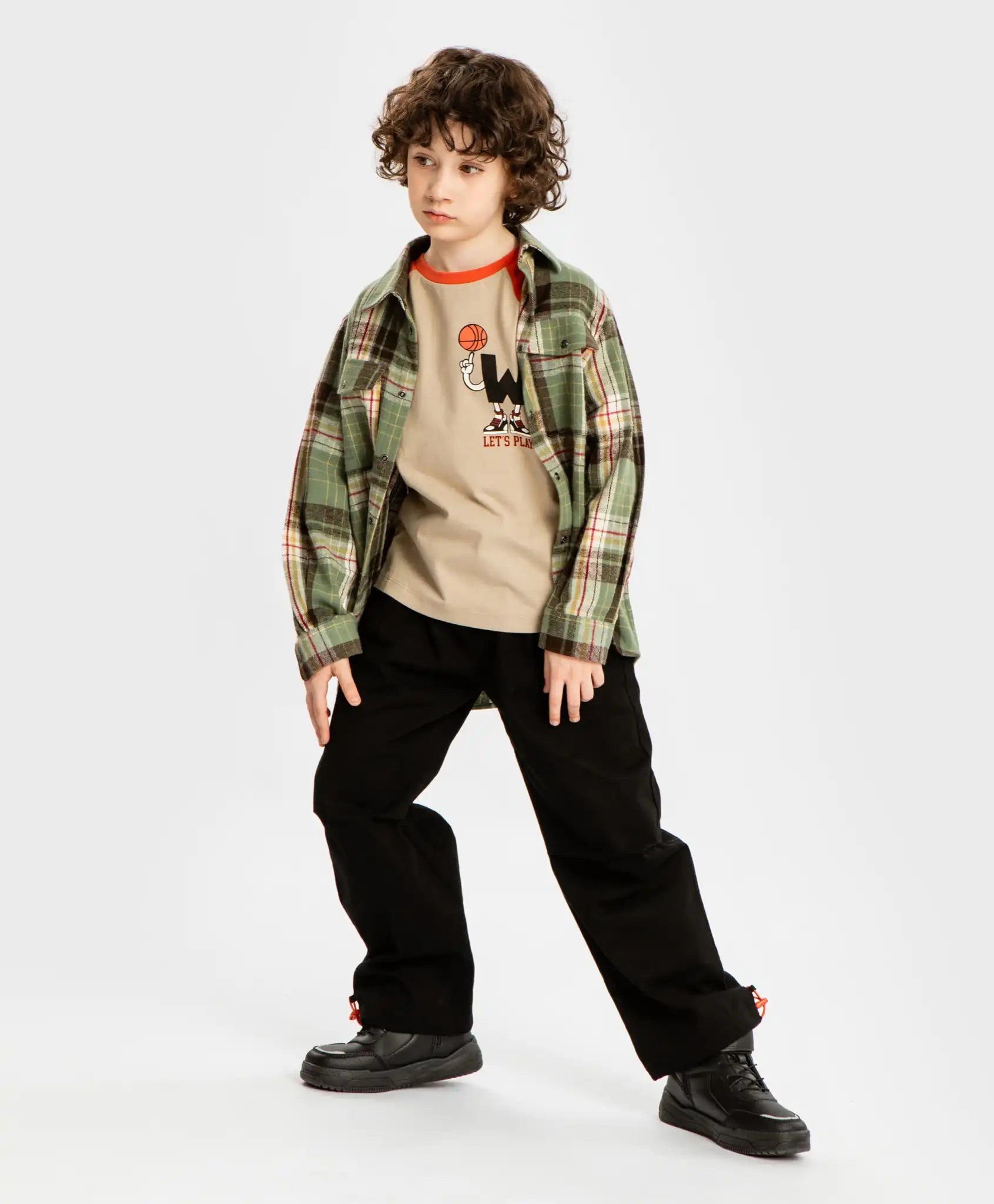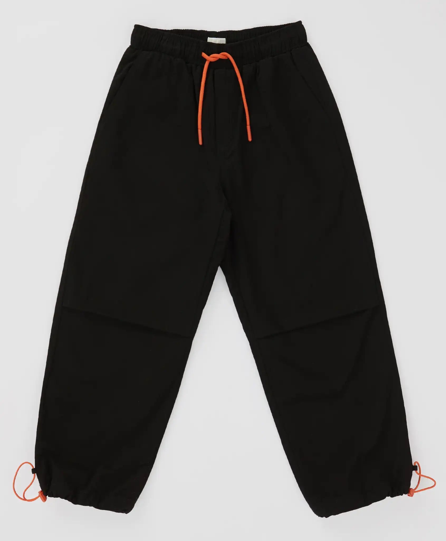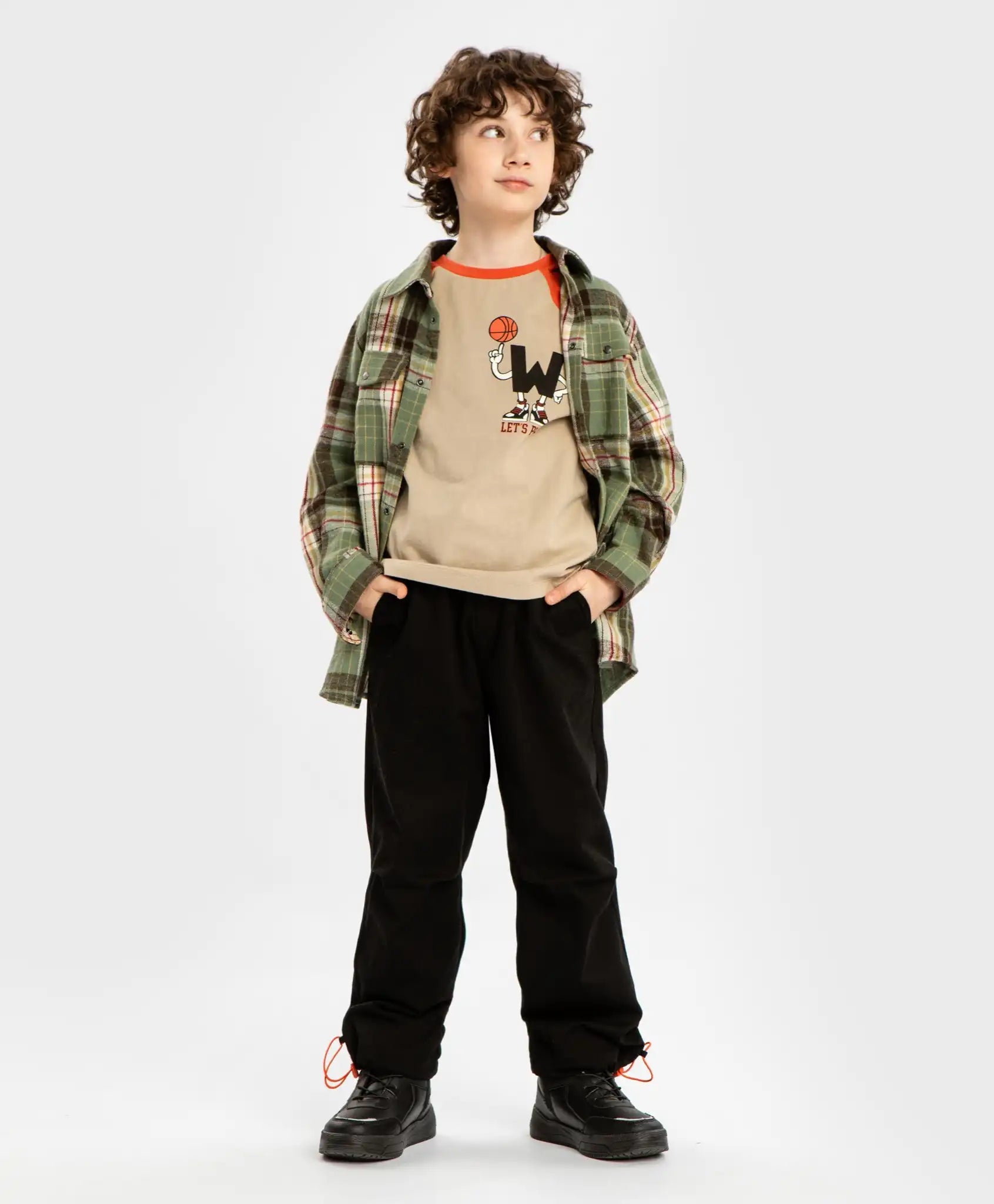 Pantaloni negri cu pliuri și ajustare a lățimii pentru băieți. Sunt confecționați din twill cu elastan, ceea ce garantează o potrivire excelentă și elasticitate. Țesătura este foarte rezistentă și călduroasă. Pentru un plus de căldură, au o căptușeală din materiale mixte. Talia elastică cu șnur oferă o potrivire ideală, iar modelul este confortabil pentru copiii cu orice siluetă. Au o imitație de fermoar și patru buzunare – două frontale tăiate și două posterioare cu clapete. Acestea sunt suficient de spațioase pentru obiecte mici. Modelul este drept, fără a fi strâmt, ceea ce îl face deosebit de confortabil pentru copiii activi. Joggerii au elastice și opritori în partea inferioară pentru reglarea lățimii. Acest detaliu este util pe vreme umedă, deoarece pantalonii pot fi strânși și fixați deasupra gleznei pentru a evita murdărirea. Pantalonii sunt decorați cu pliuri la genunchi și un patch. Urmați recomandările de îngrijire indicate pe eticheta cusută.