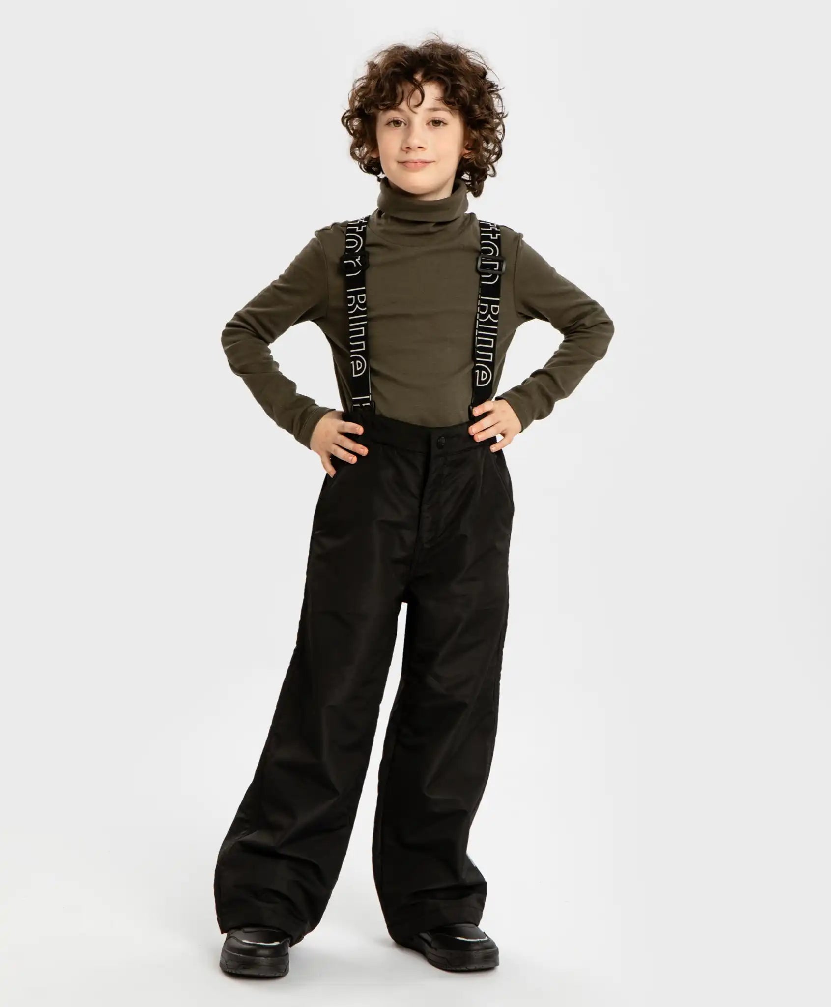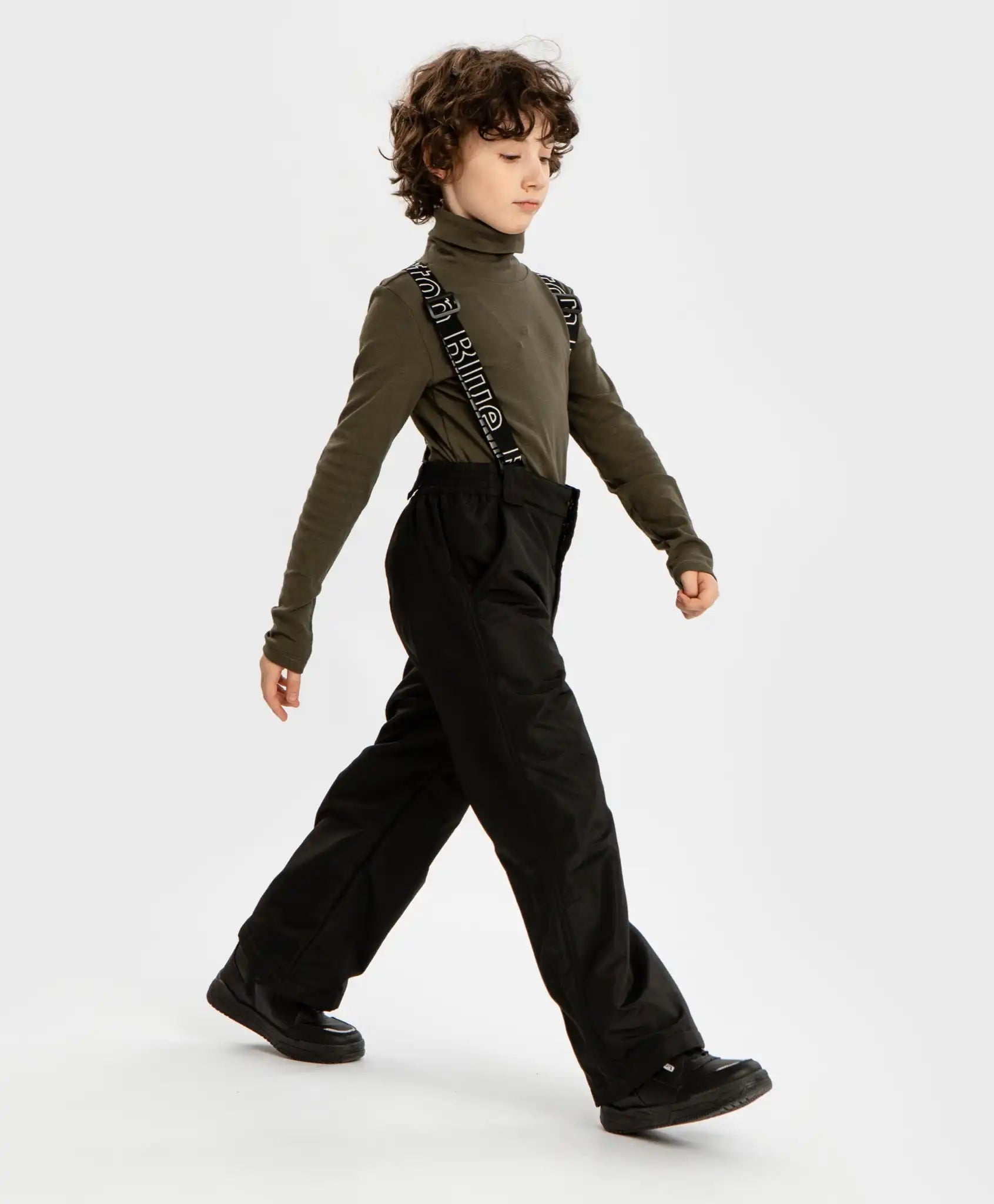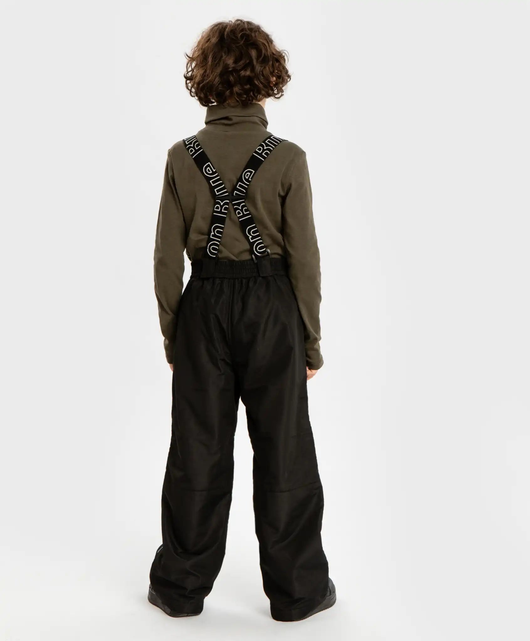 Pantaloni căptușiți, de sezon intermediar, cu bretele detașabile, negri, pentru copii, Button Blue