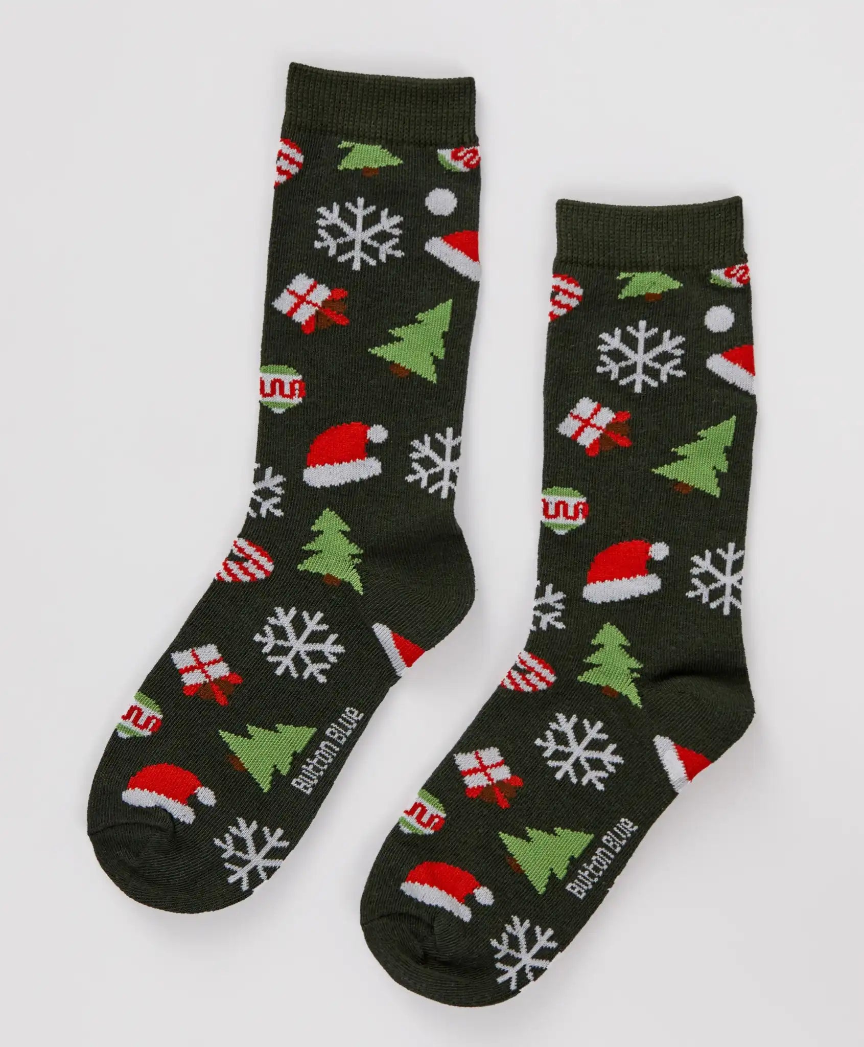 Șosete înalte de Crăciun verzi pentru băieți Button Blue