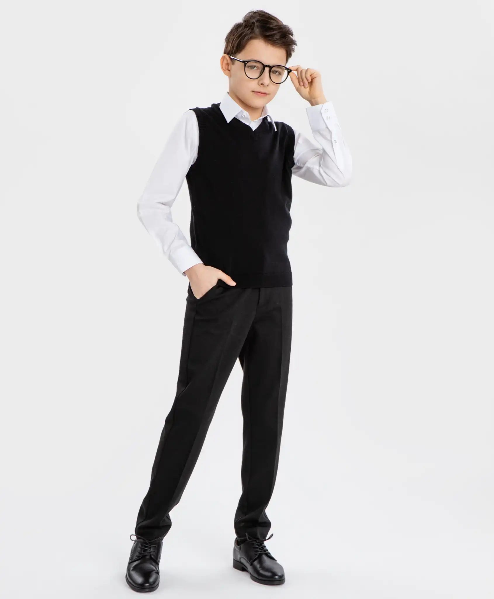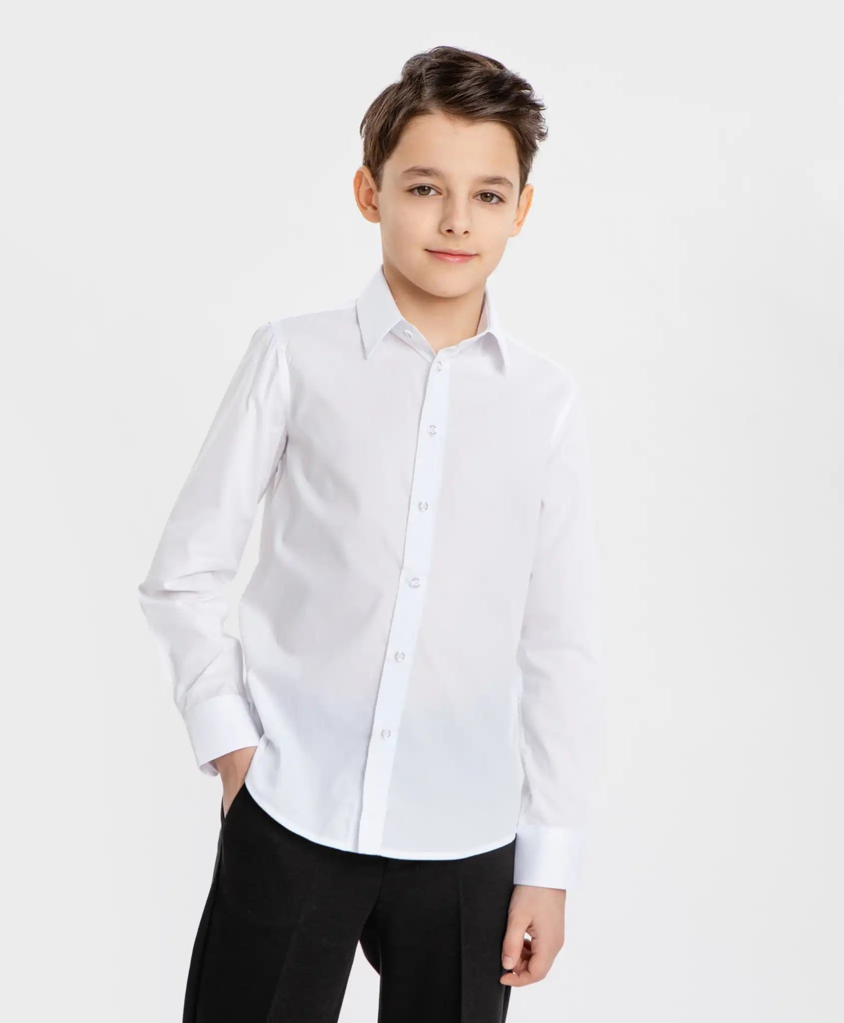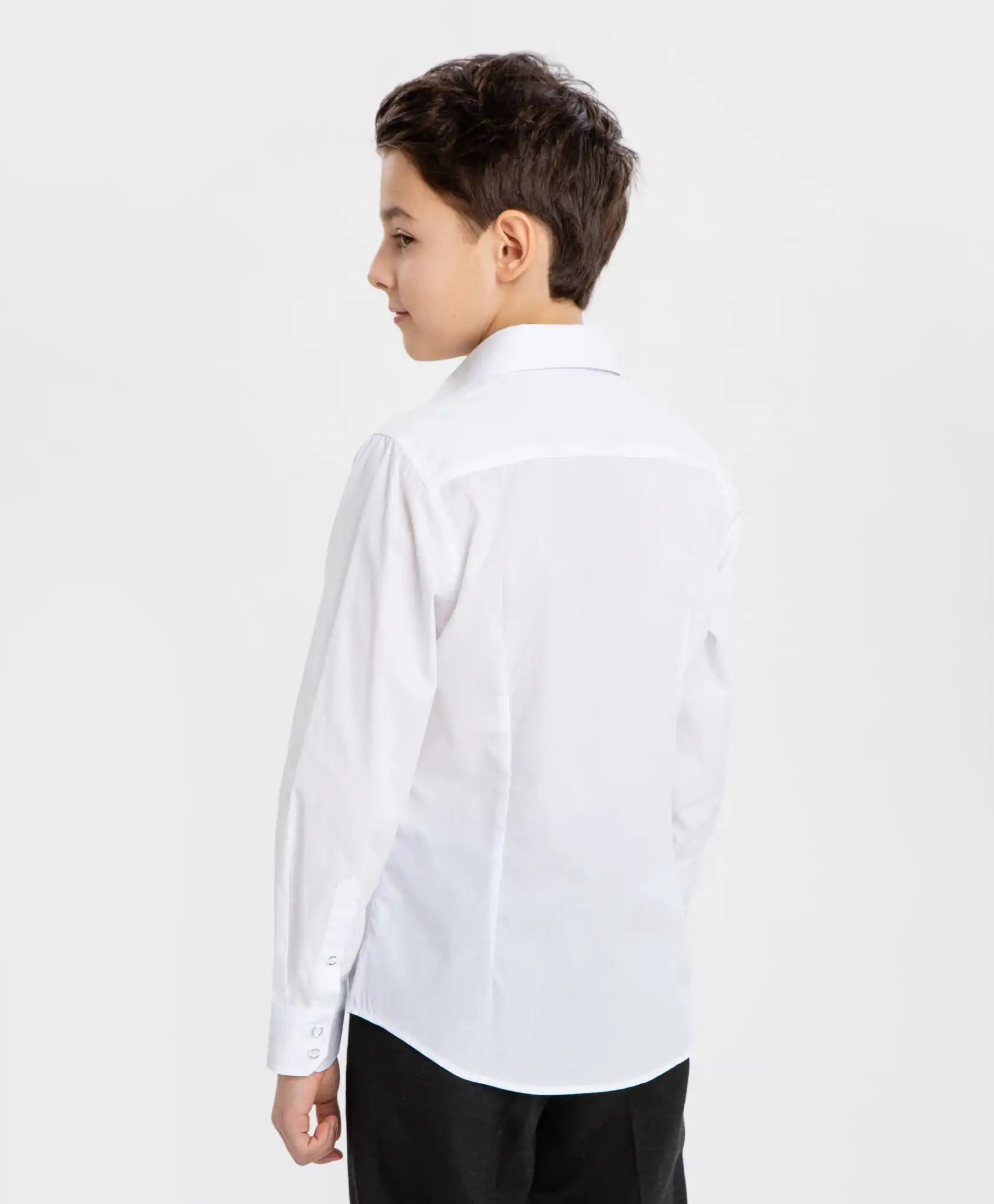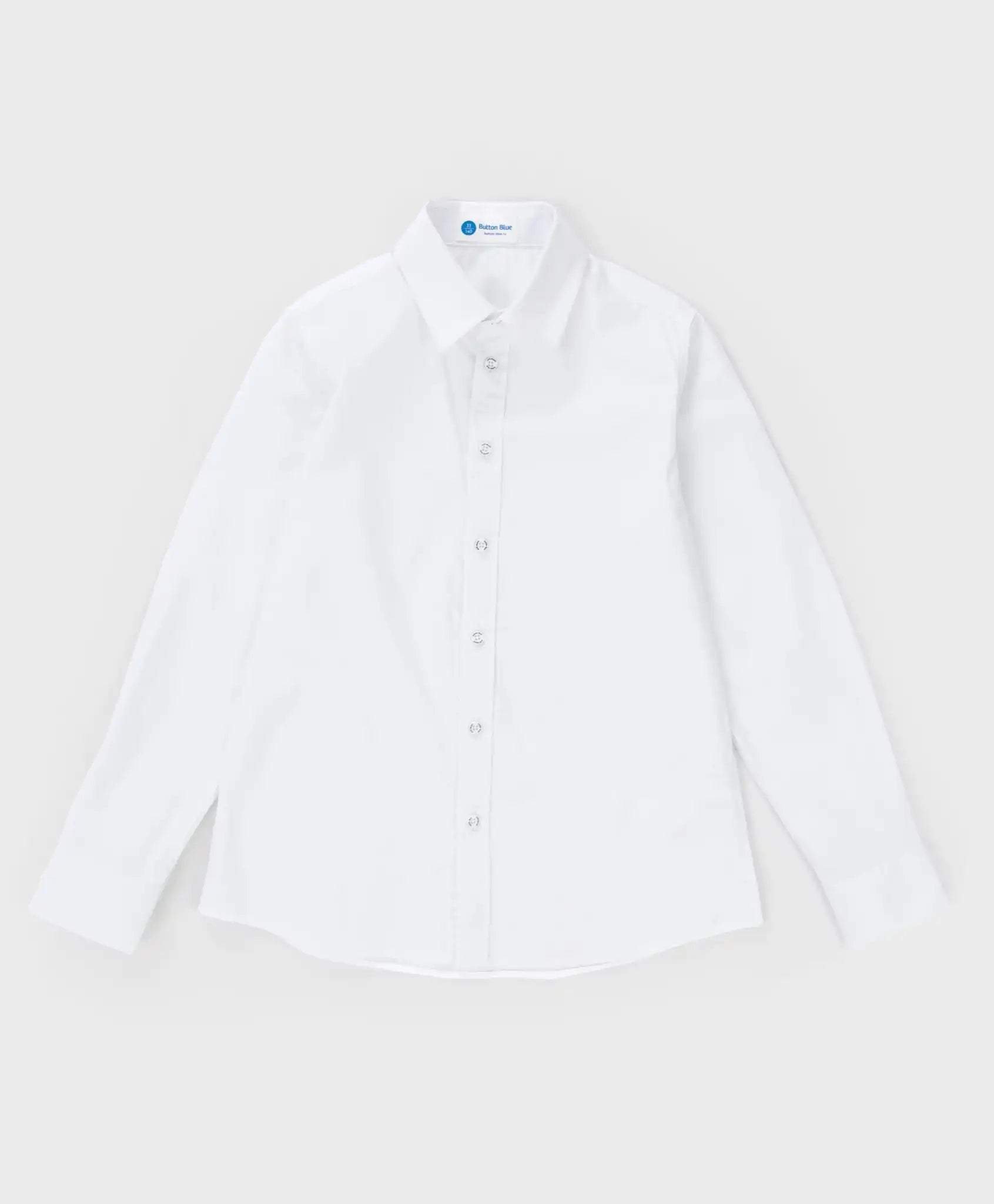 Cămașă albă școlară cu mâneci lungi pentru băiat. Produsul este confecționat dintr-o țesătură netedă, compusă exclusiv din bumbac. Este foarte respirabilă, asigurând confort maxim pe tot parcursul zilei. Cămașa este plăcută pentru piele, își păstrează bine forma chiar și după purtare îndelungată. Gulerul întors și manșetele cu nasturi adaugă un aer formal. Cămașa de la Button Blue se închide cu nasturi branduiți. Modelul este cambrat, clasic. Acesta accentuează silueta copilului și se integrează perfect în garderoba școlară. Se combină ușor cu orice uniformă. Cusăturile sunt finisate impecabil, garantând durabilitatea produsului. Densitatea cămășii este medie – ușor transparentă. Cămașa arată bine atât băgată în pantaloni, cât și purtată lejer. Urmați instrucțiunile de îngrijire indicate pe eticheta interioară.