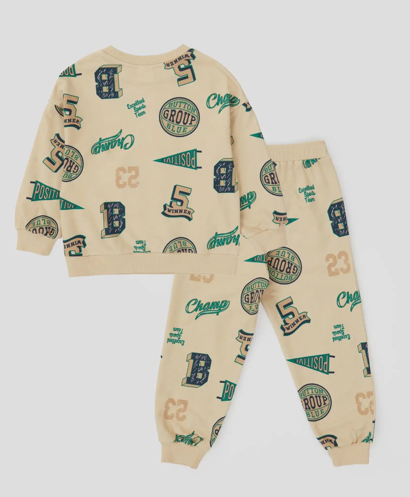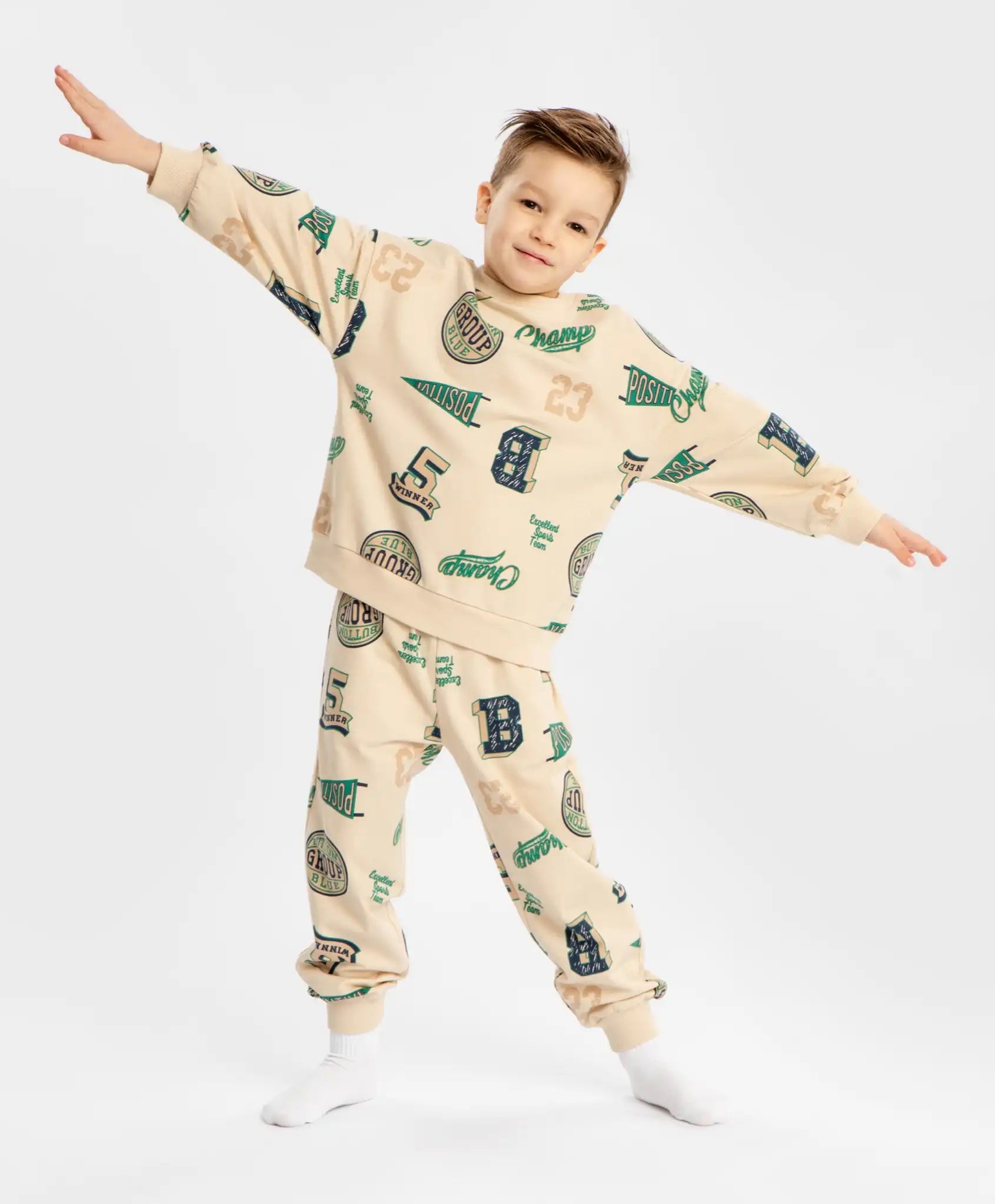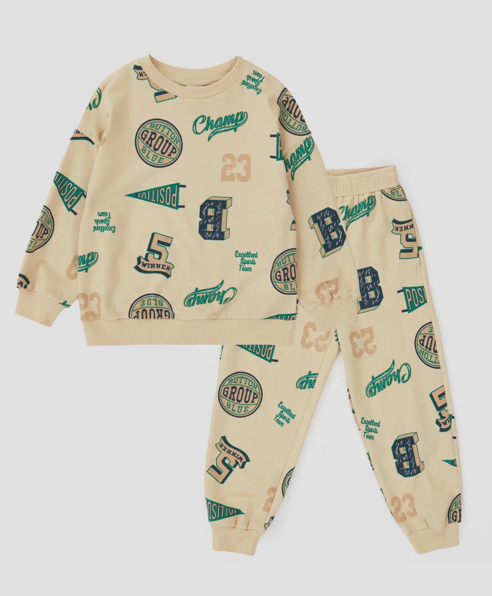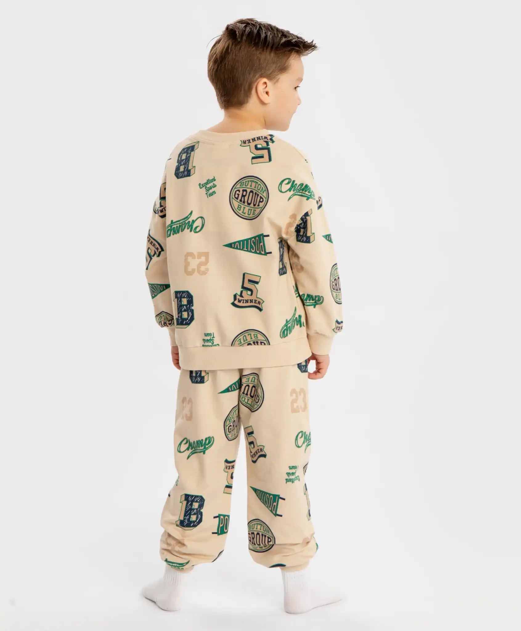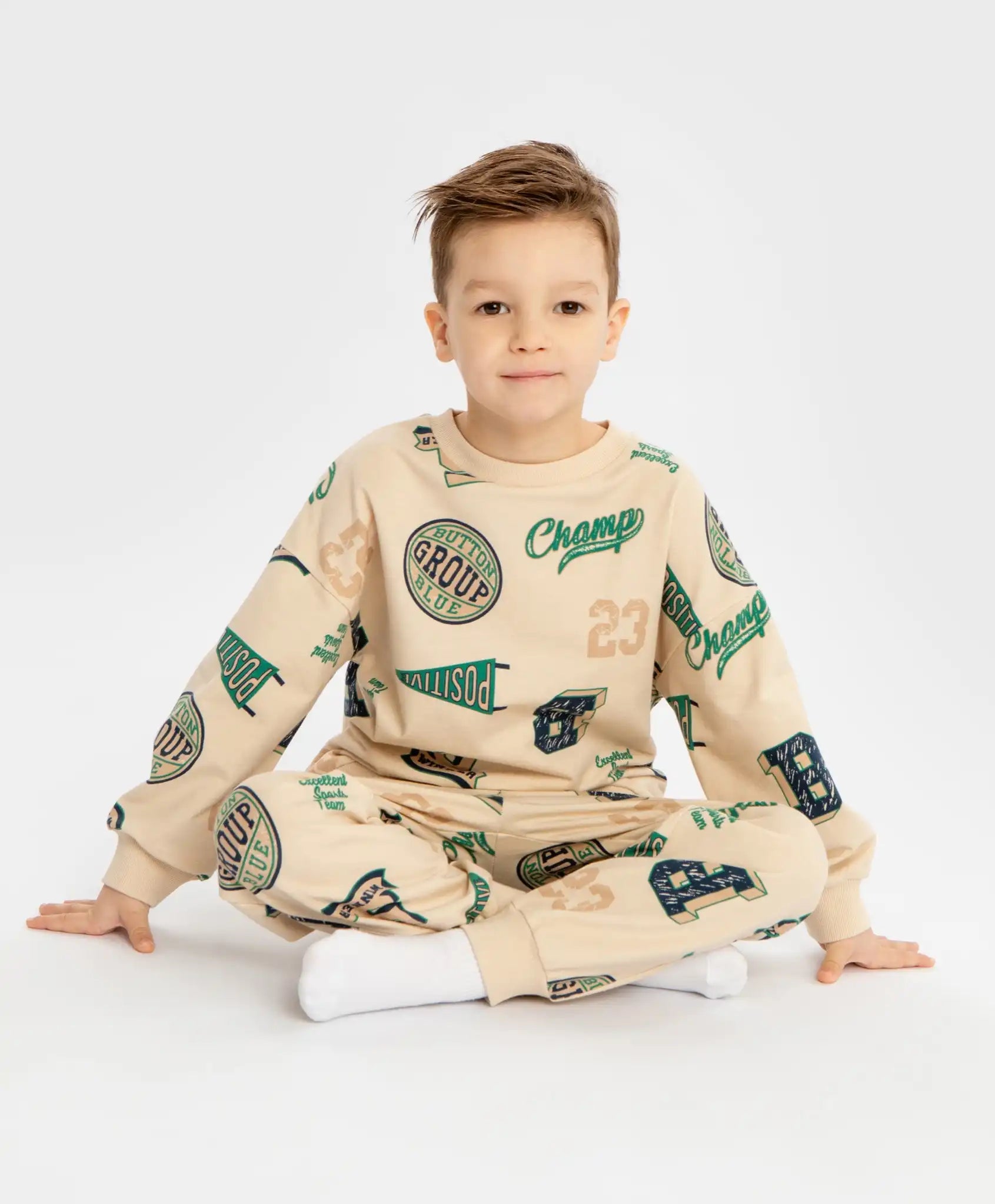 Pijamale cu joggeri și hanorac cu imprimeu, bej, pentru băiat, Button Blue