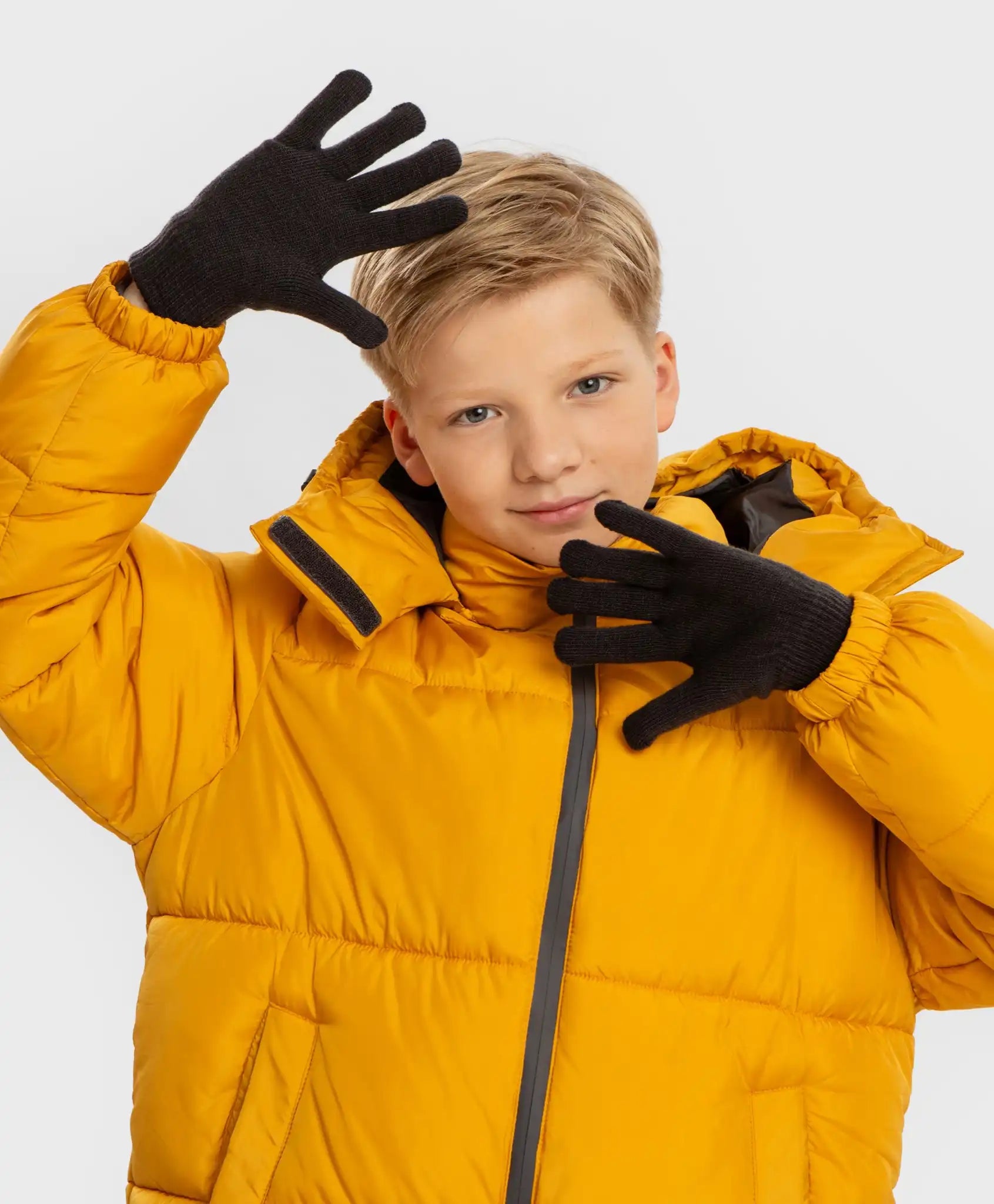 Mănuși tricotate pentru copii de la Button Blue în culoare albastru închis. Sunt realizate din acril cu adaos de nailon, făcându-le călduroase, netede și plăcute la atingere, păstrându-și forma și culoarea și având o uscare rapidă. Sunt ideale pentru plimbările de toamnă-iarnă. Manșetele elastice duble din țesătură rib aderă bine la încheieturi, prevenind pătrunderea aerului rece. Aceste mănuși vor menține mâinile copilului calde. Designul simplu permite asortarea ușoară cu diverse ținute. Urmați recomandările de îngrijire indicate pe eticheta interioară.