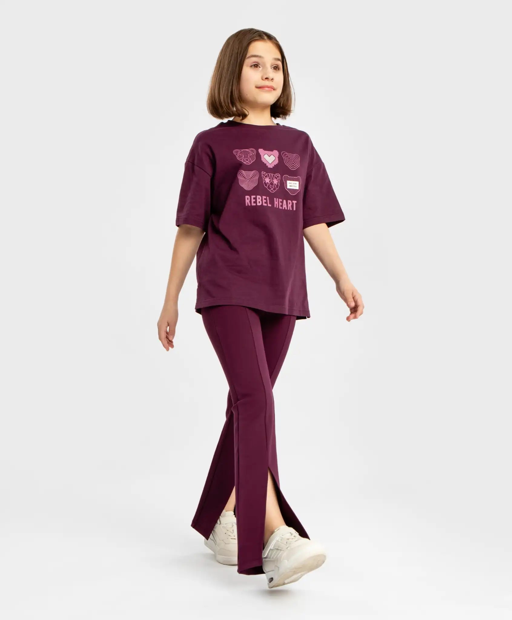 Pantaloni tricot bootcut, cu tăieturi frontale, mov, pentru fată, Button Blue