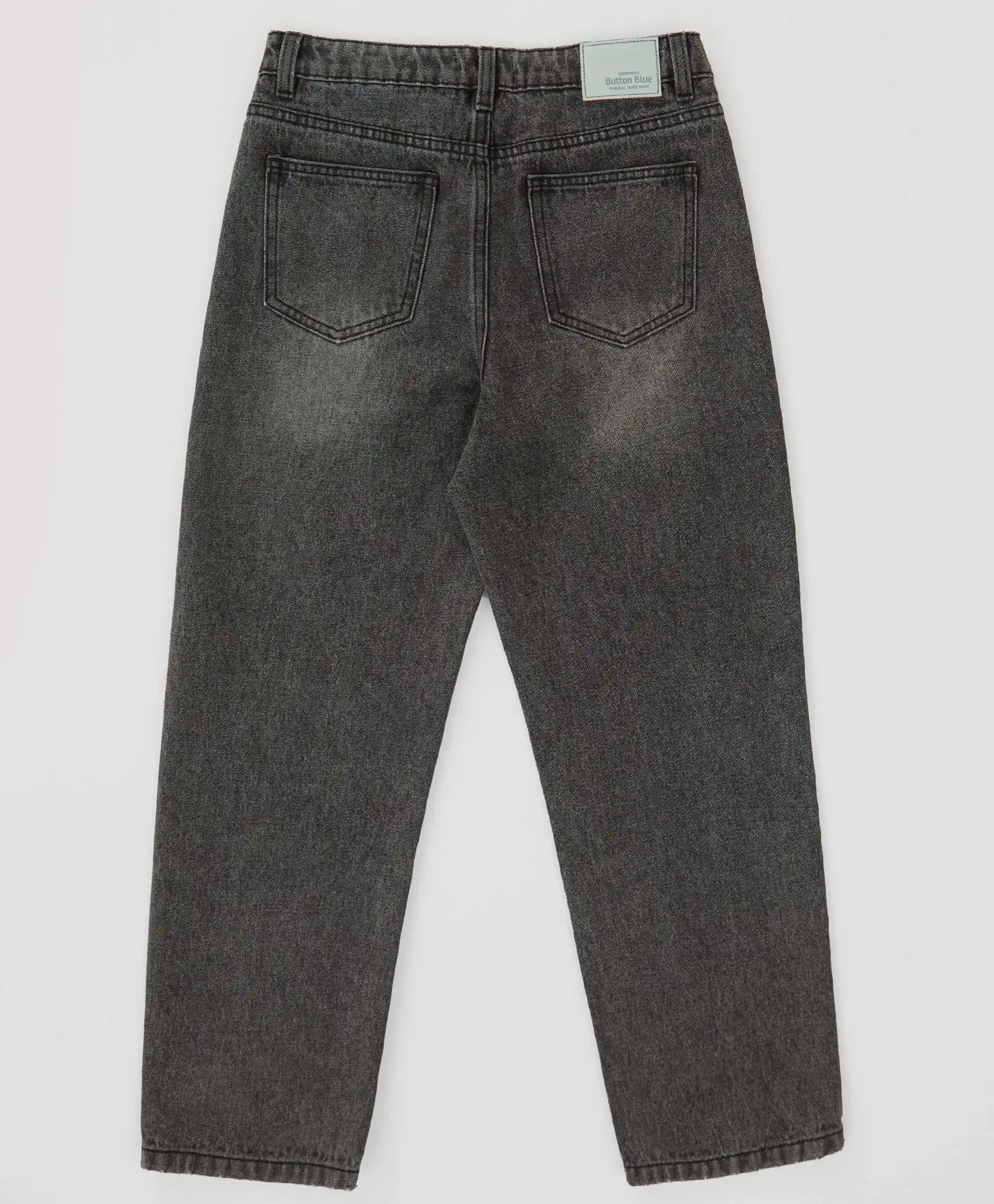 Blugi regular fit, cu croială dreaptă și efect de uzură, gri, pentru copii, Button Blue