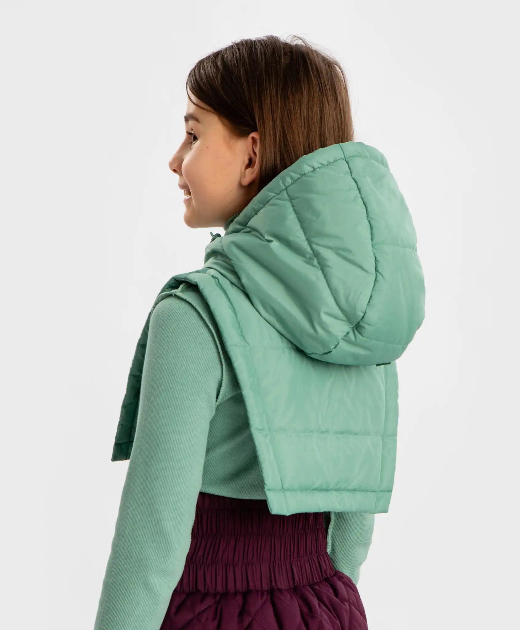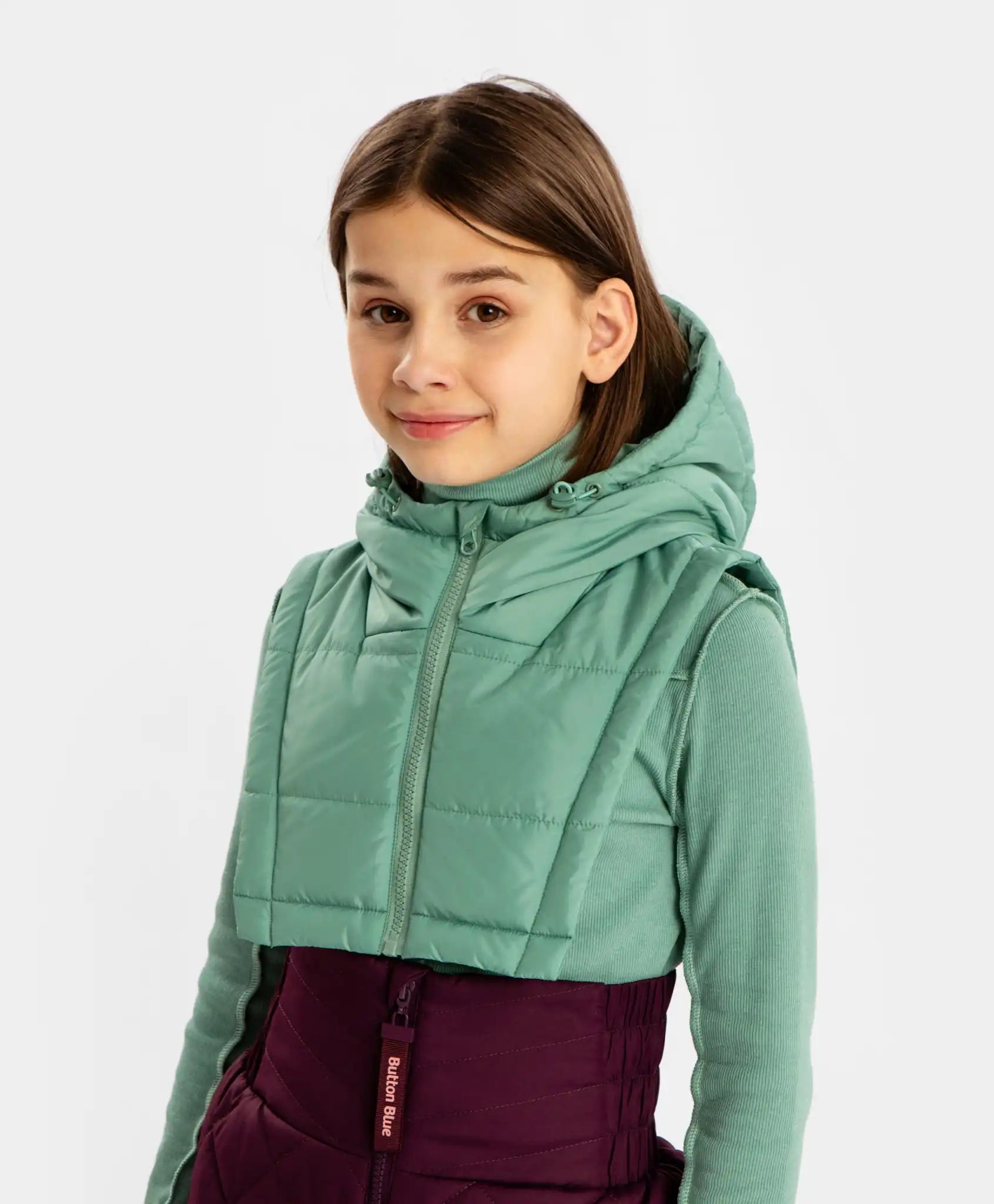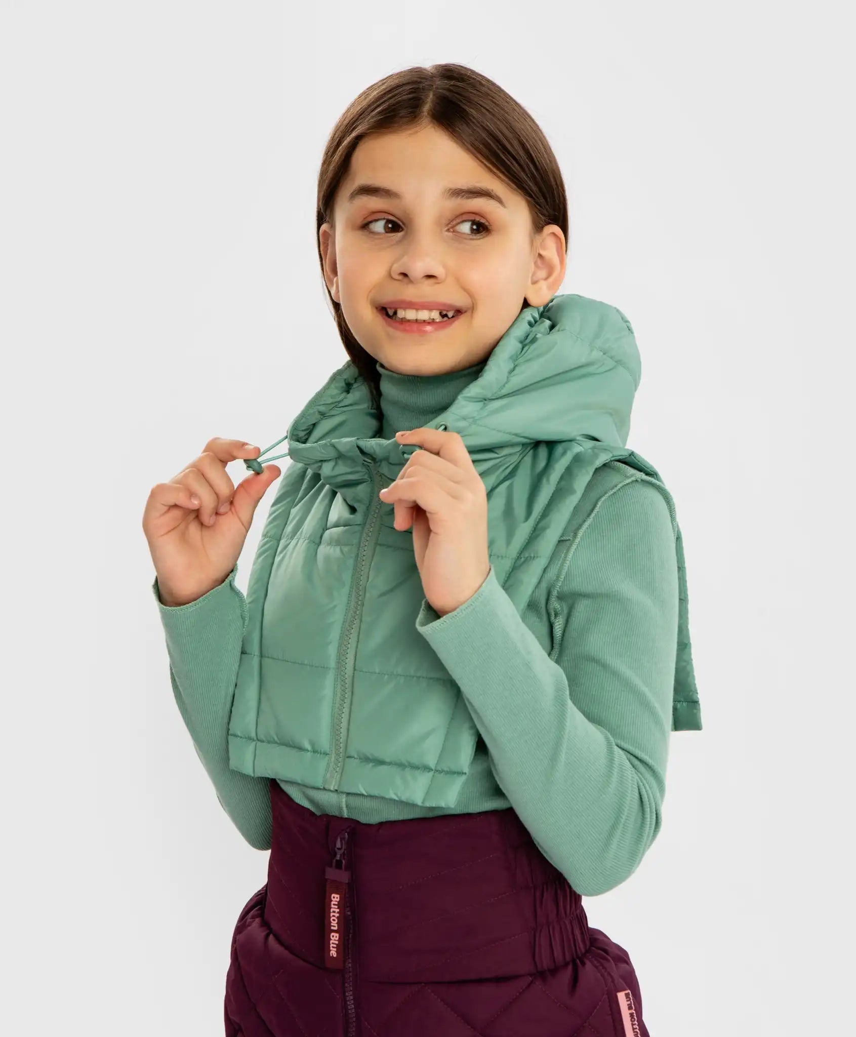 Mânecă căptușită cu glugă verde pentru fetițe Button Blue