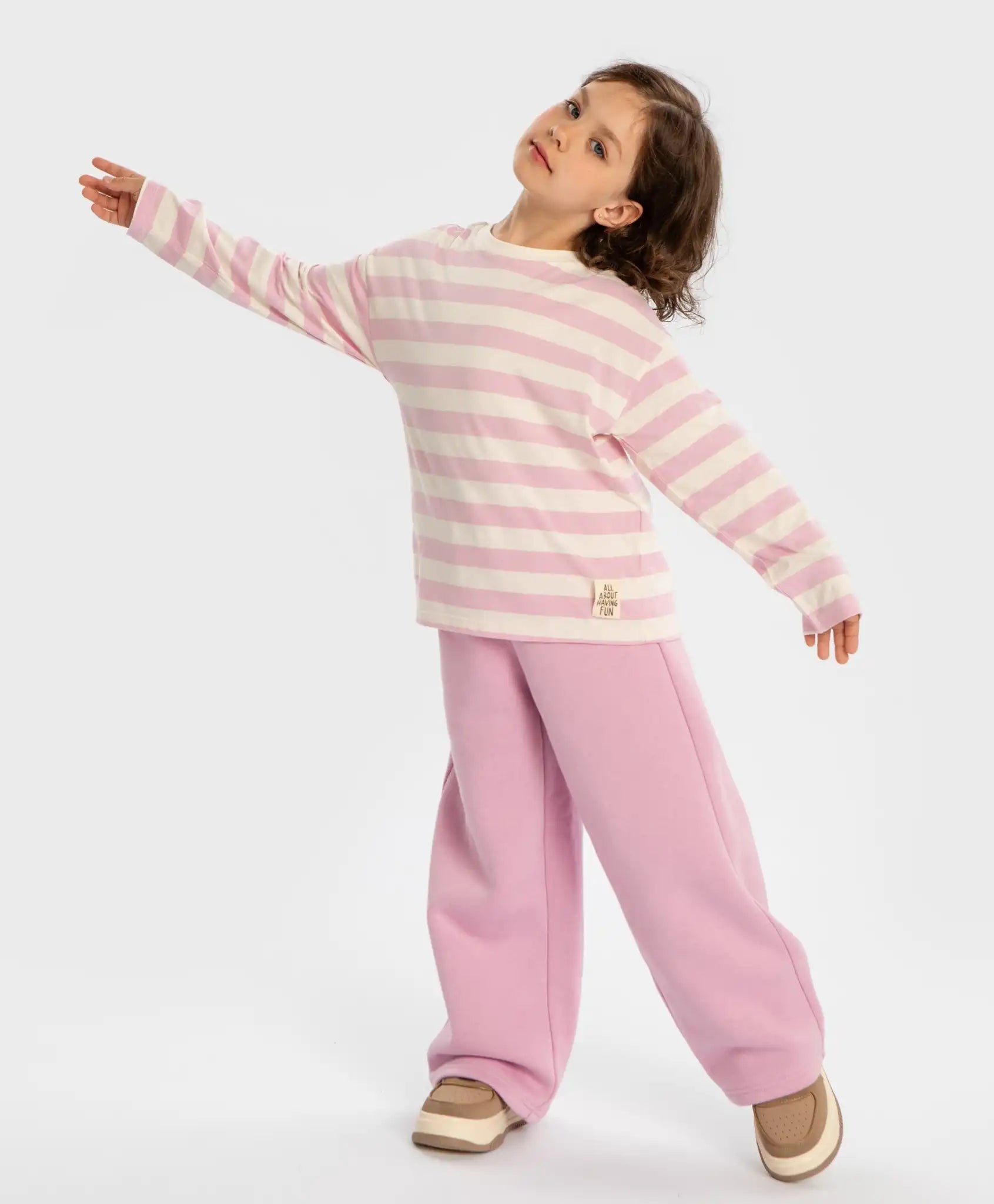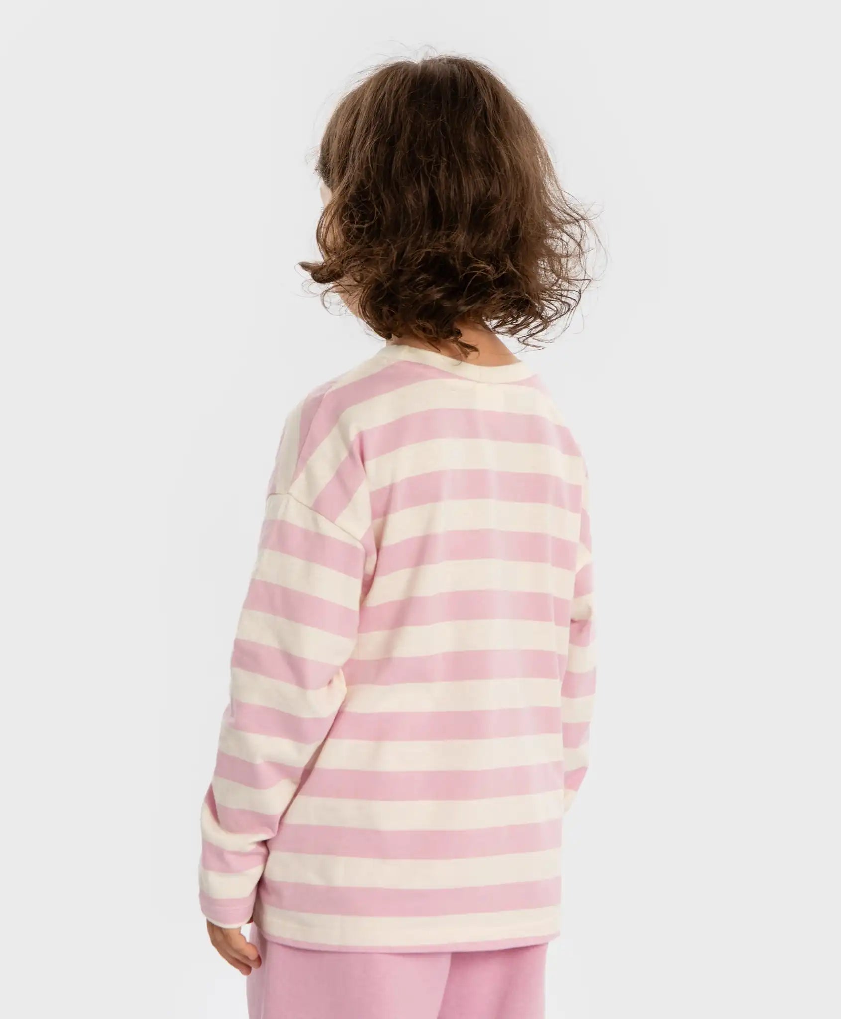 Bluza cu mânecă lungă în dungi pentru fete, în nuanțe de roz și alb lăptos. Modelul de la Button Blue este realizat din tricot fin din bumbac, fiind moale, ușor de întreținut, bine aerisit și elastic. Densitatea ridicată asigură că materialul nu este transparent. Această bluză menține un confort termic optim – nu este prea călduroasă, iar mânecile lungi oferă protecție împotriva frigului. Decolteul clasic rotund facilitează îmbrăcarea și dezbrăcarea. Croiala dreaptă, fără ajustare pe corp, asigură confort pentru orice siluetă. Modelul nu are un aspect voluminos, păstrând un echilibru între confort și stil. Nuanțele delicate oferă un aer romantic ținutei. Pe spate, este adăugată o etichetă jacquard discretă. Respectați instrucțiunile de îngrijire indicate pe eticheta produsului.
