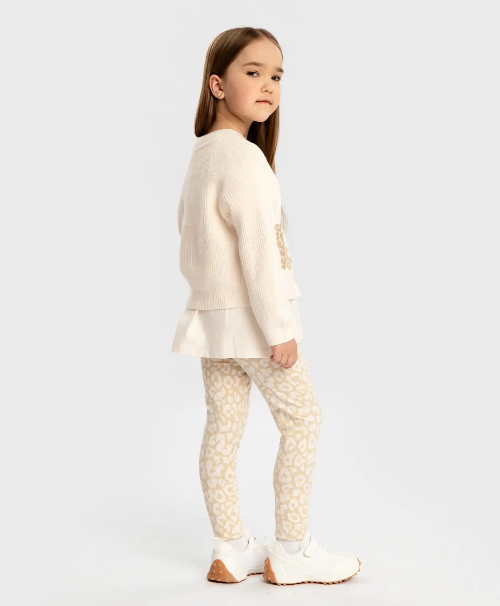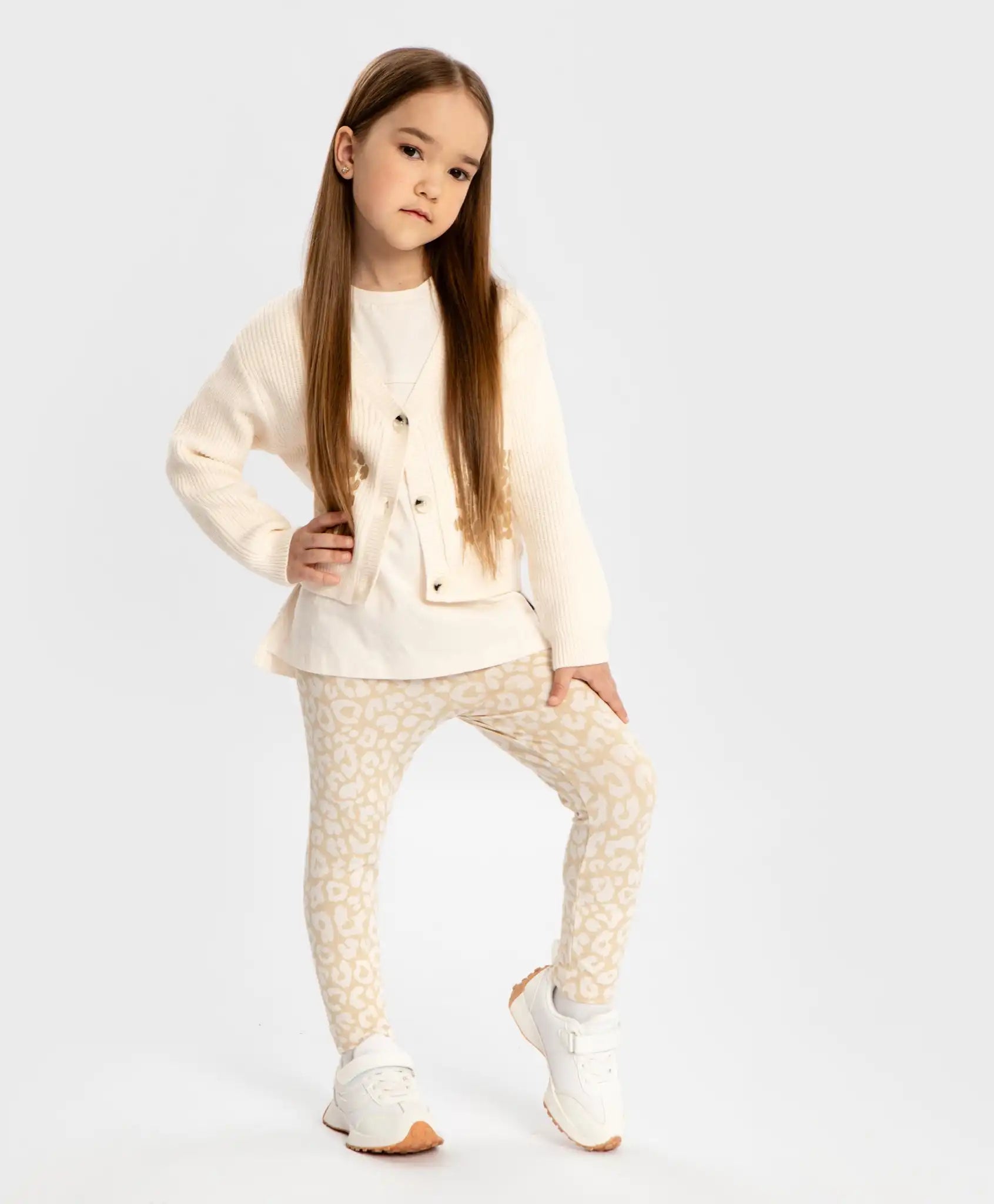 Colanți cu imprimeu animal print, bej, pentru fată, Button Blue