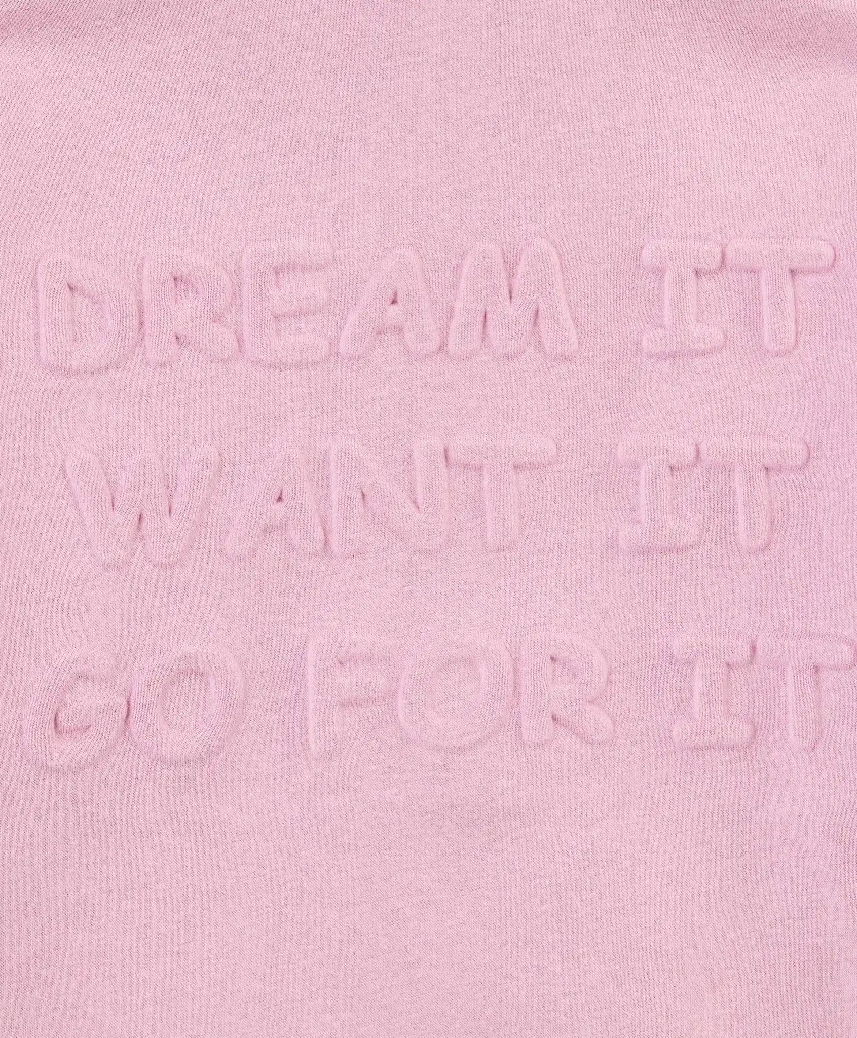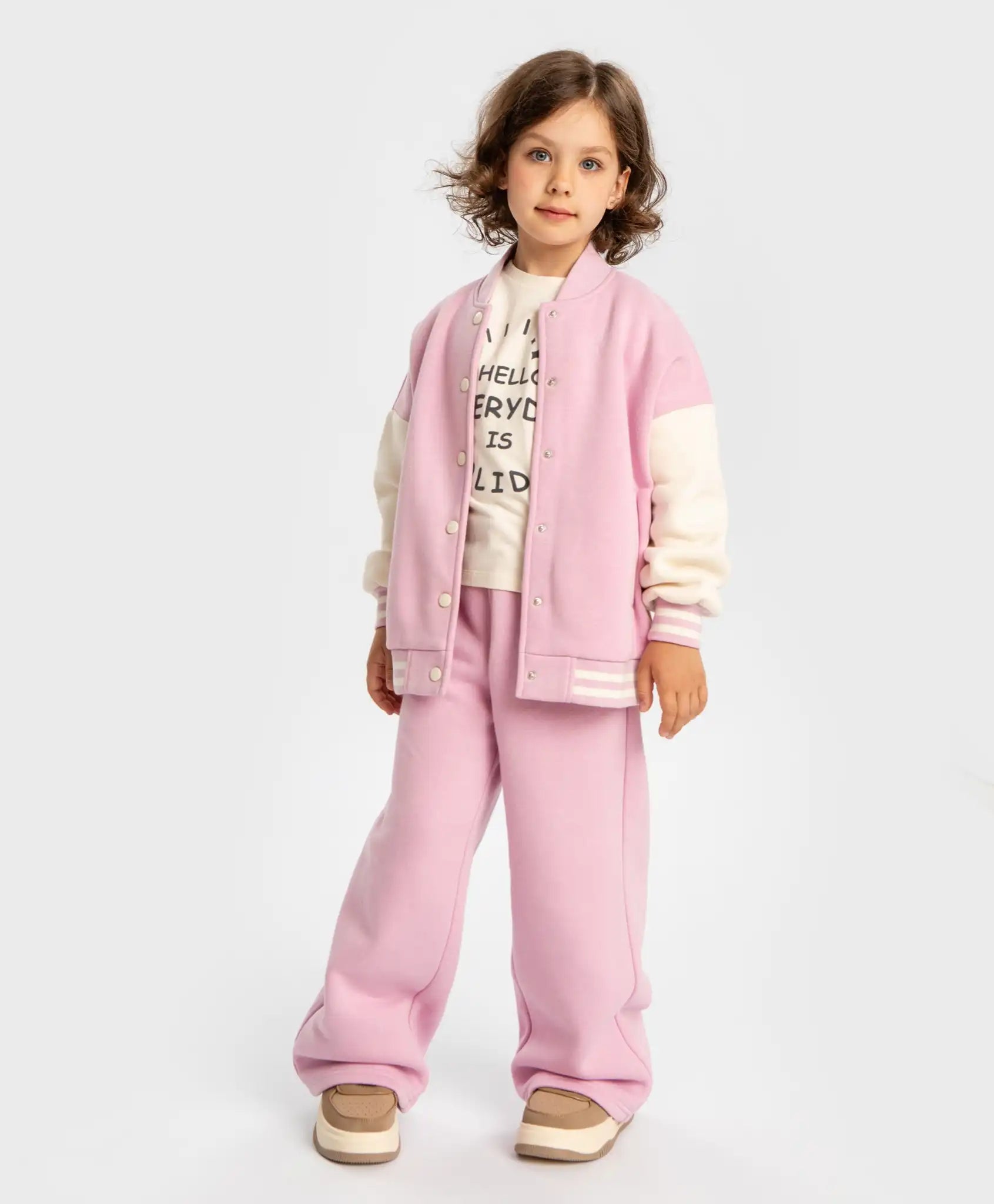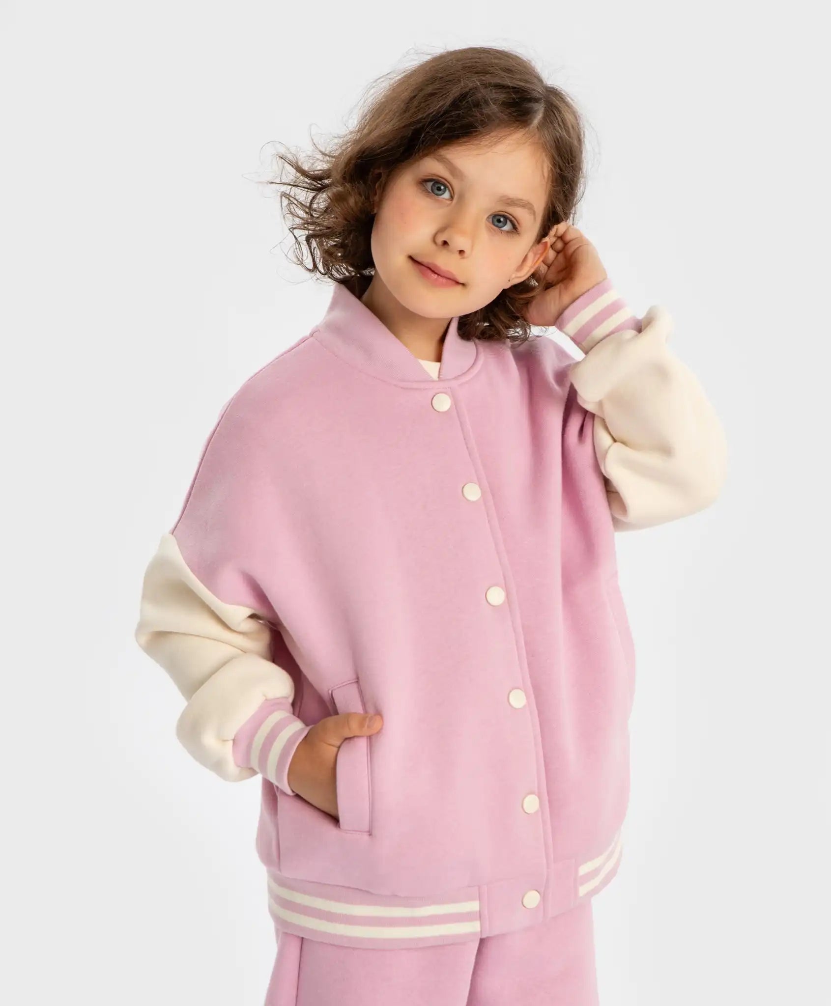 Bomberul roz cu căptușeală pentru fată de la Button Blue, cu închidere cu nasturi, este confecționat din French Terry cu interior moale, ceea ce îl face plăcut la atingere și călduros. Datorită conținutului ridicat de bumbac, modelul este moale și respirabil, iar elastanul îi adaugă elasticitate. Închiderea cu nasturi este foarte practică pentru îmbrăcare și dezbrăcare rapidă. Decolteul, partea inferioară și manșetele sunt finisate cu material ripsat elastic în dungi. Are două buzunare pentru mâini sau obiecte importante. Bomberul este într-o nuanță roz zaharisită, iar mânecile și nasturii sunt într-o nuanță delicată de lapte, ceea ce oferă un contrast interesant piesei vestimentare. Spatele este decorat cu un imprimeu tipografic reliefat. Bomberul este perfect atât pentru ținute sportive, cât și pentru outfituri de zi cu zi. Urmați recomandările de îngrijire indicate pe eticheta internă.