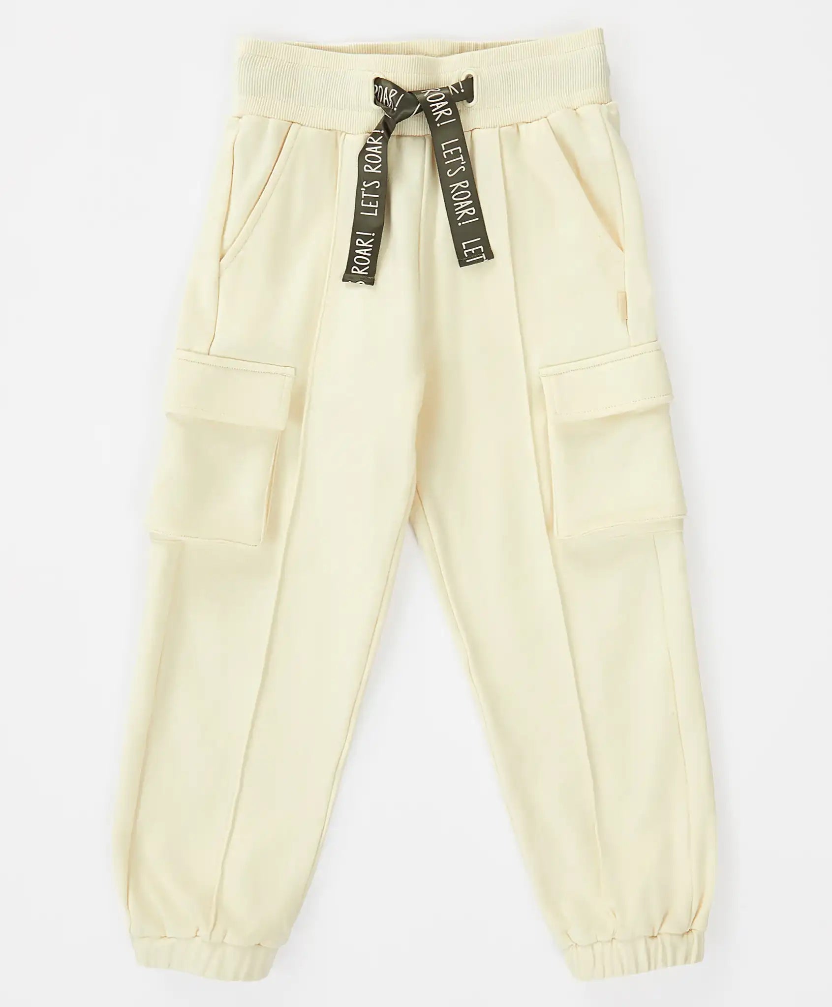 Joggeri cu patru buzunare și cusături exterioare, crem, pentru fată, Button Blue