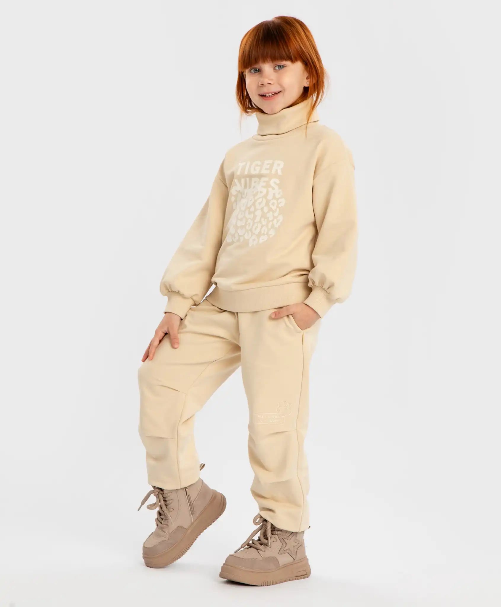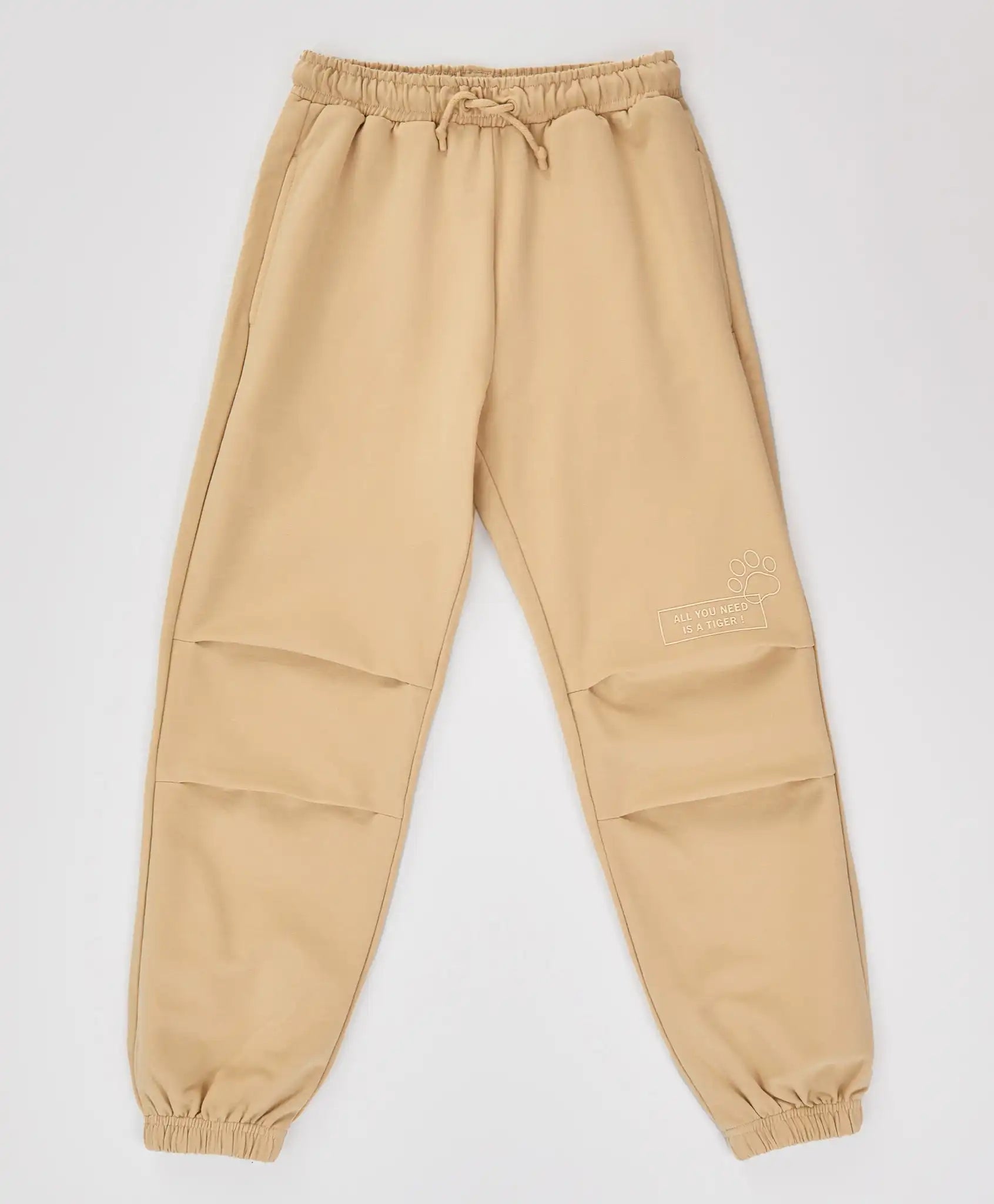 Joggeri cu pliuri la genunchi, talie elastică și imprimeu, bej, pentru fată, Button Blue
