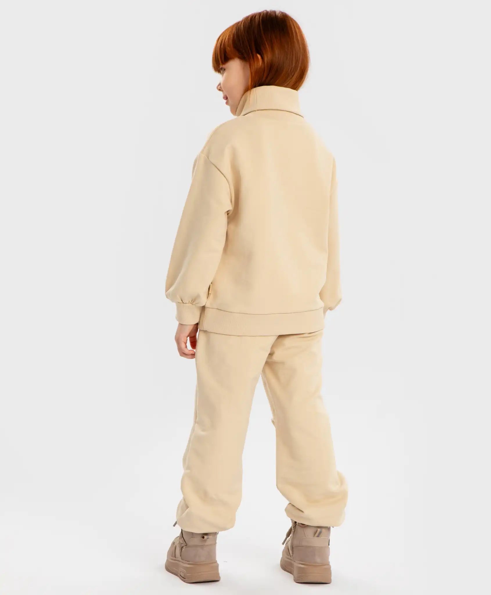 Joggeri cu pliuri la genunchi, talie elastică și imprimeu în nuanță bej pentru fete. Modelul de la Button Blue este confecționat din fleece fără vată, ceea ce îi face netezi și plăcuți la atingere, respirabili și ușor de întreținut. Joggerii sunt ușor de îmbrăcat și de dat jos, iar elasticul din talie cu șnururi asigură o potrivire perfectă. Sunt potriviți pentru fete cu orice conformație. Pantalonii nu sunt mulați și nu restricționează mișcarea, iar elasticul de la baza cracilor îi fixează în jurul gleznelor în mod confortabil, dar stabil. Buzunarele oferă spațiu pentru obiecte mici esențiale sau pentru încălzirea mâinilor. Designul monocrom, fără detalii inutile, permite combinarea ușoară cu alte haine. Joggerii sunt decorați cu pliuri la nivelul genunchilor și un imprimeu cauciucat pe crac. Urmați instrucțiunile de îngrijire indicate pe etichetă.