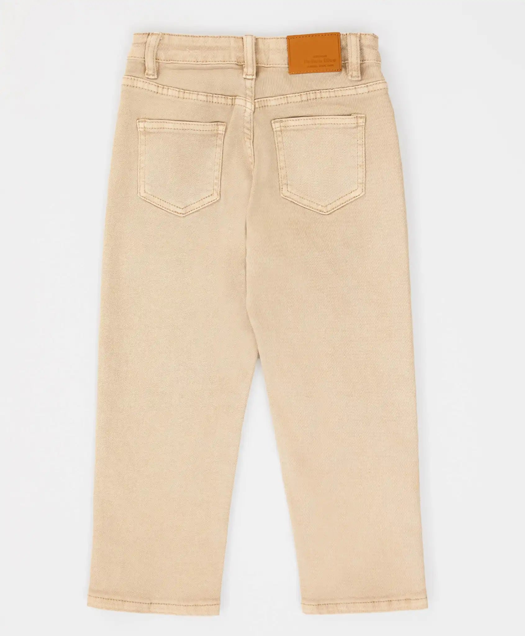 Blugi "Mom fit" pentru fete, într-o nuanță bej cu imprimeu leopard. Nu sunt mulați, având un aspect lejer și oferind confort pentru copii cu orice conformație. Se închid cu nasture și fermoar. Au găici pentru curea și elastic interior reglabil cu nasture pentru ajustarea circumferinței. Au două buzunare în față și două în spate. Blugii de culoare deschisă par de bază, dar imprimeul leopard în tonuri aurii le conferă un aer elegant fără a fi prea ostentativi. Acești blugi sunt perfecți atât pentru ocazii speciale, cât și pentru ținute casual. Urmați instrucțiunile de îngrijire indicate pe etichetă.