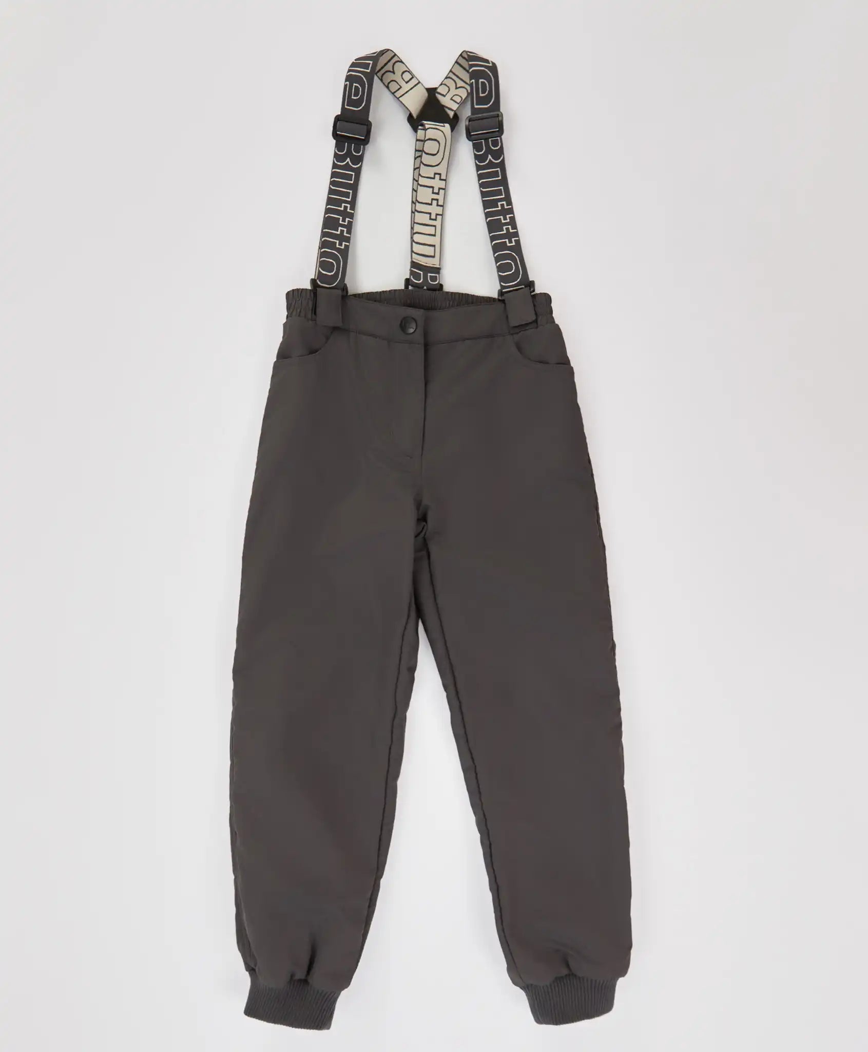 Pantaloni căptușiți, de sezon intermediar, impermeabili, cu bretele detașabile, gri, pentru copii, Button Blue