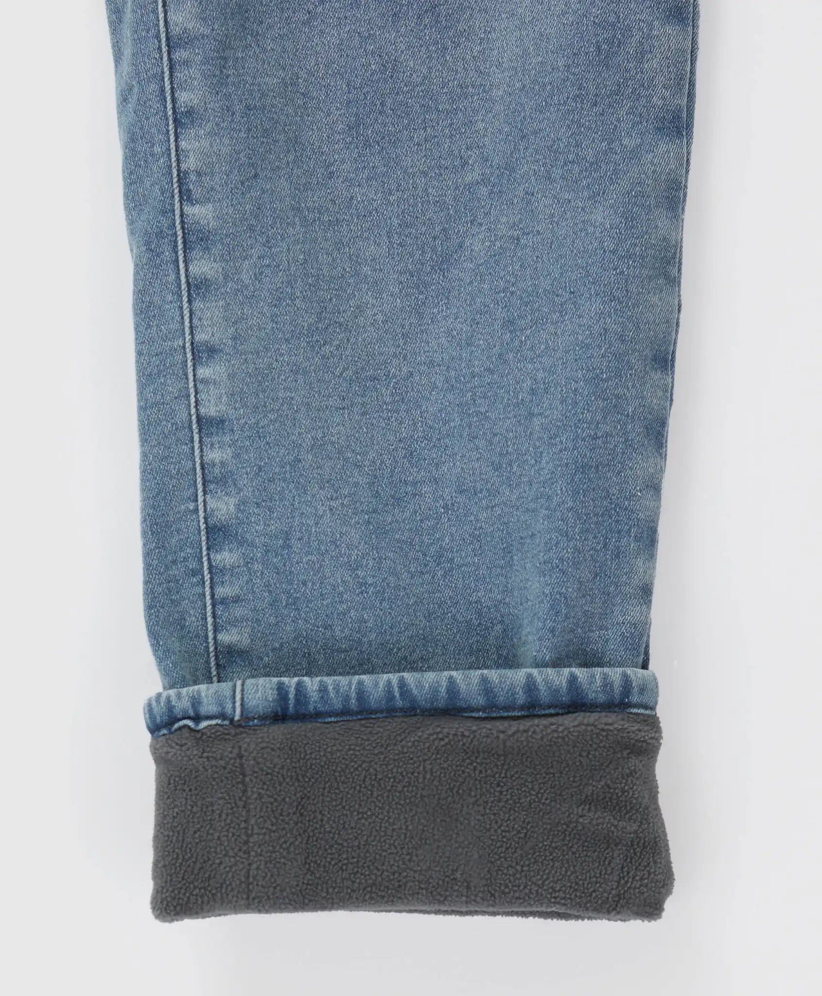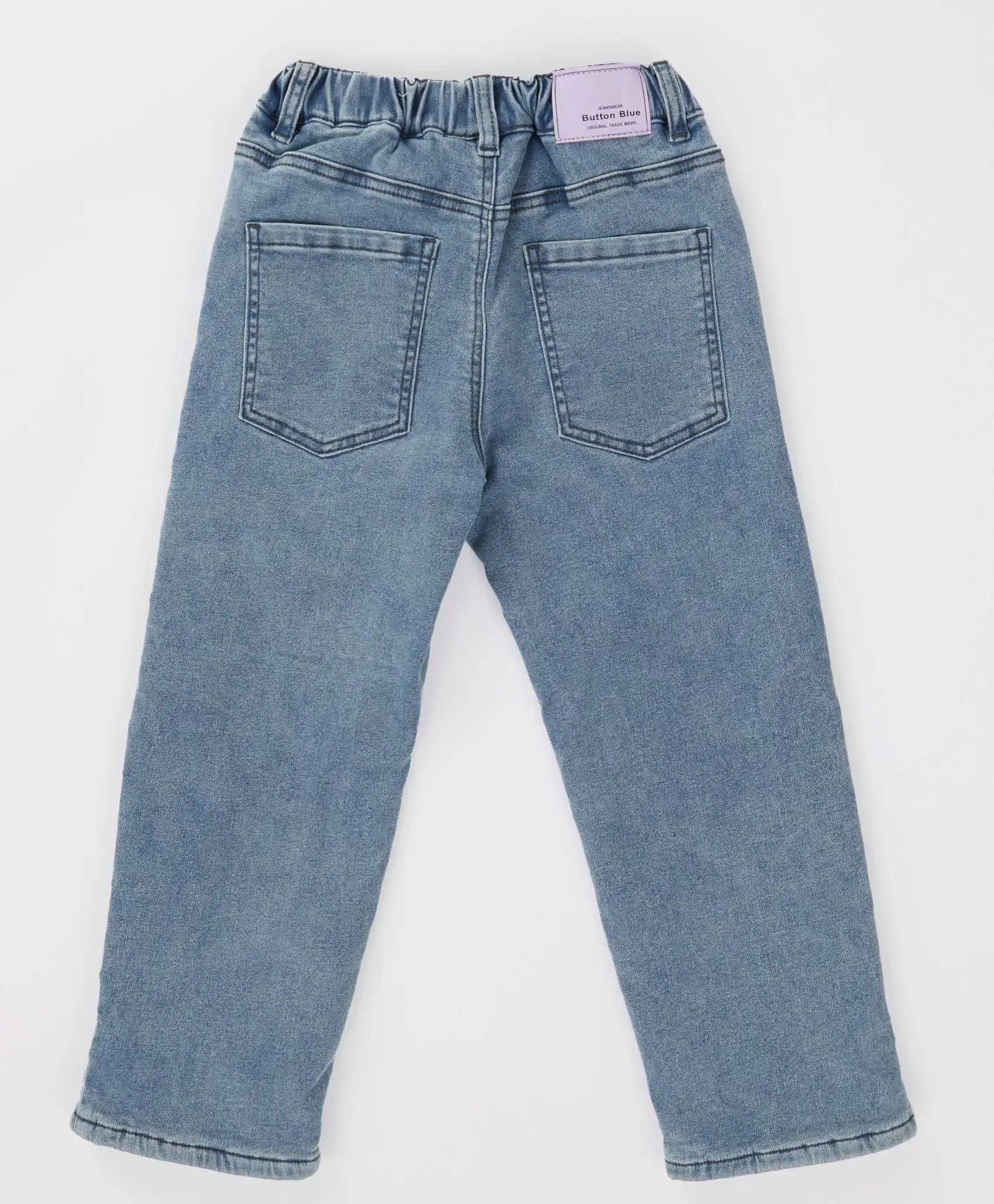Blugi căptușiți, cu talie elastică, albaștri, pentru fată, Button Blue