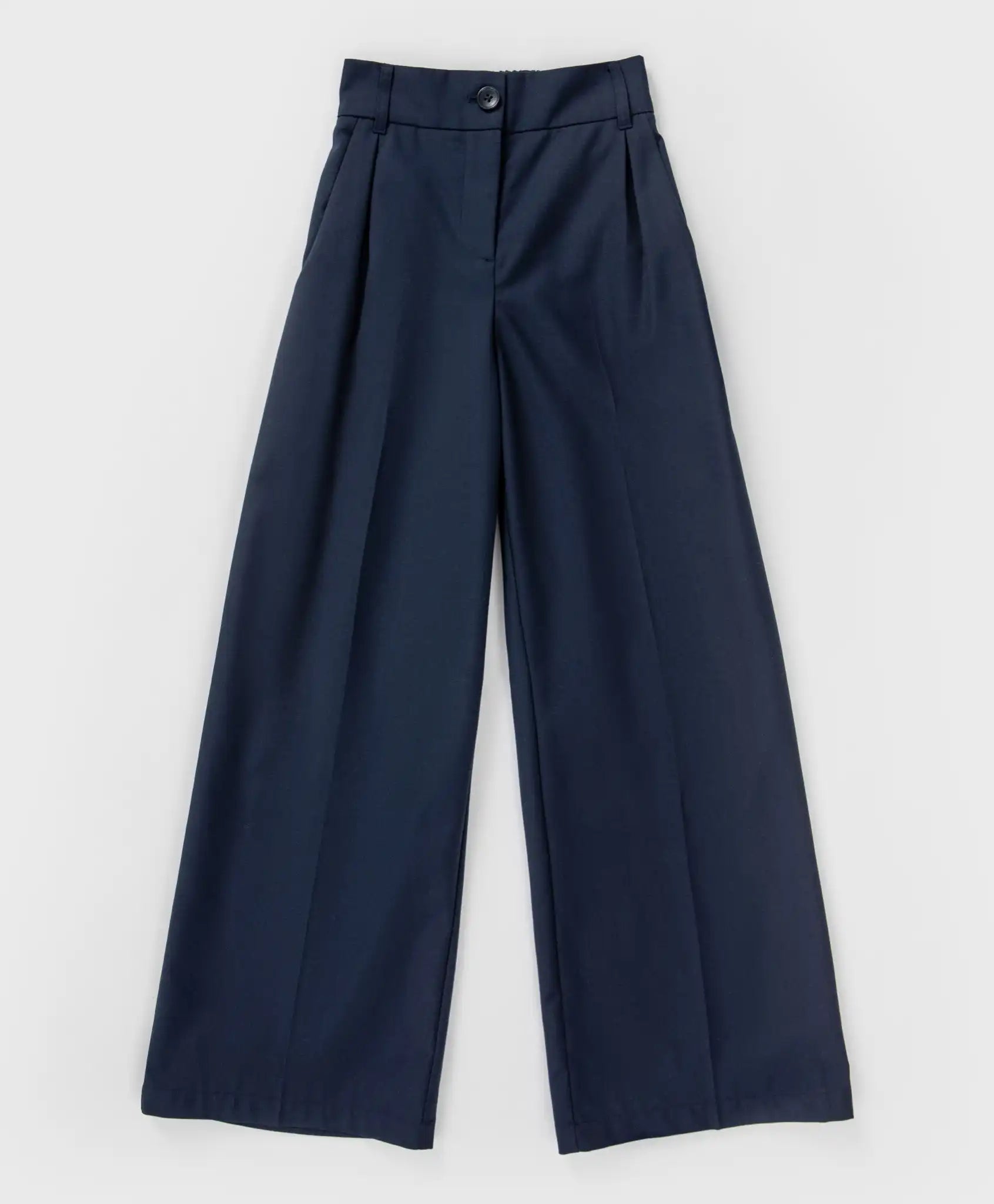 Pantaloni palazzo cu pliuri, albaștri, Button Blue