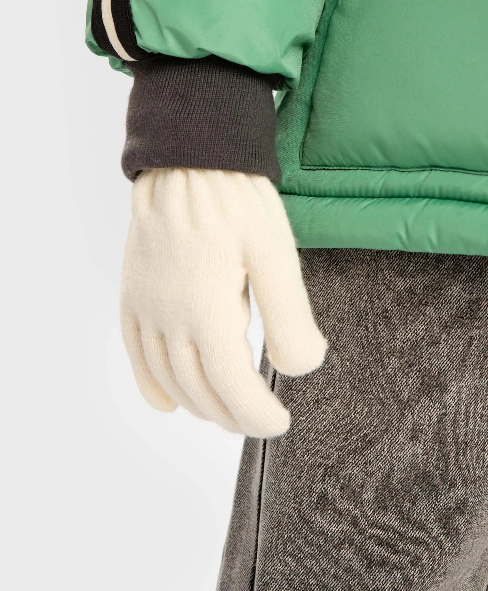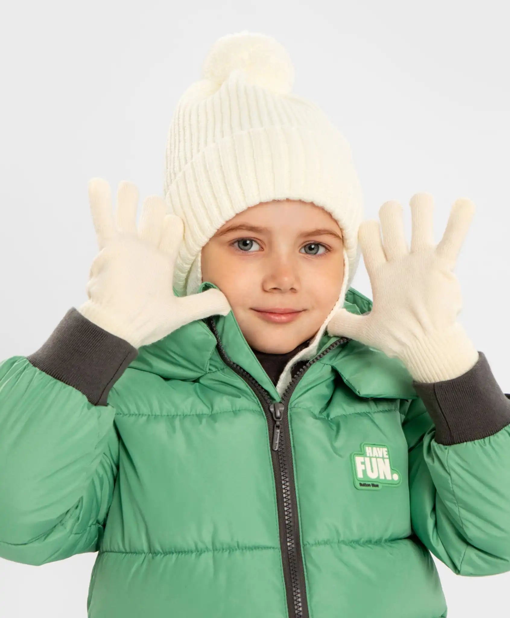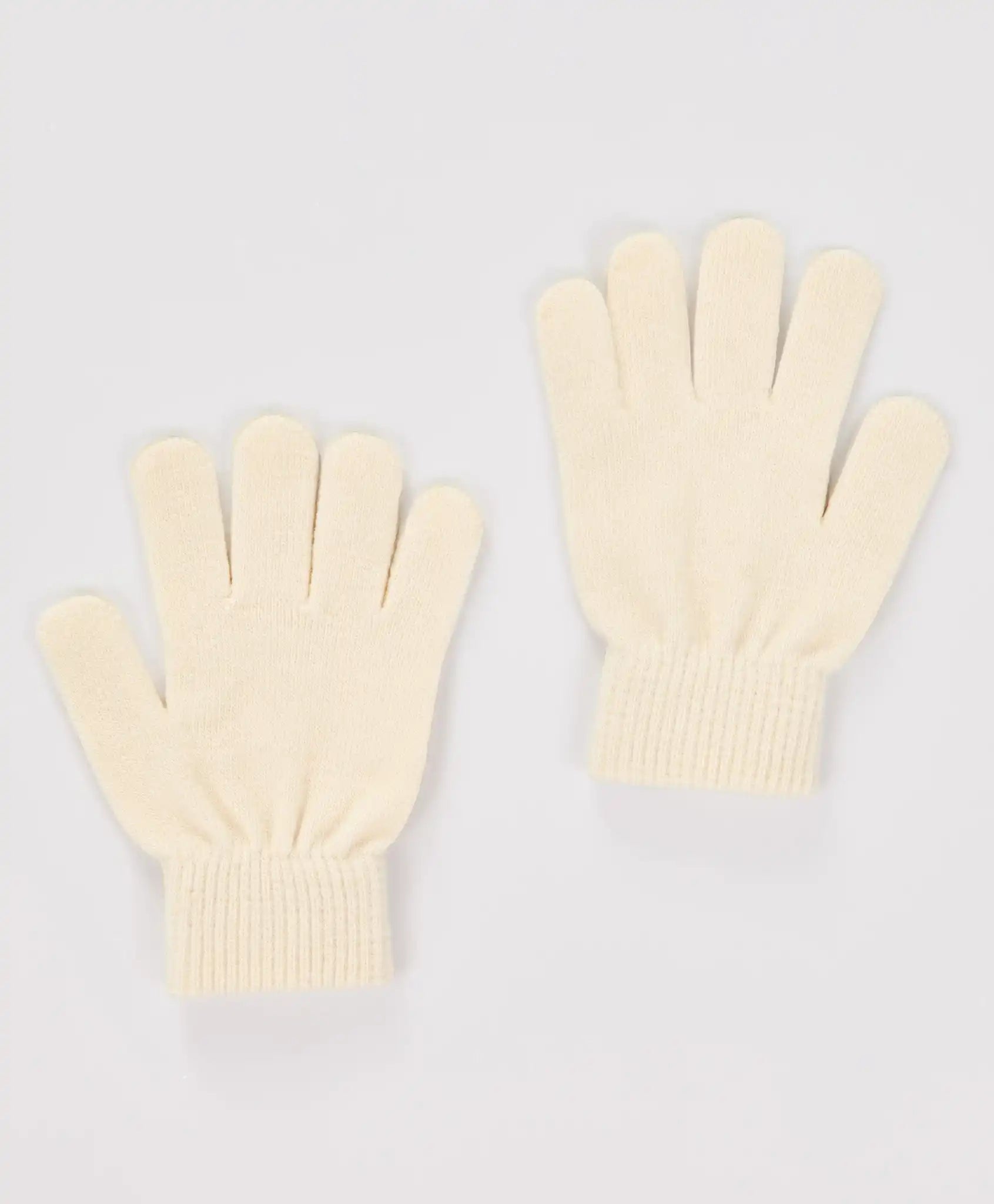 Mănuși tricotate pentru copii de la Button Blue în culoare crem. Modelul este realizat din acril cu adaos de nailon, fiind călduros, neted și plăcut la atingere. Aceste mănuși își păstrează bine forma și culoarea, se usucă rapid și sunt ideale pentru plimbările de toamnă-iarnă. Manșetele moi și elastice din țesătură rib aderă perfect la încheieturi, împiedicând pătrunderea aerului rece. Mâinile copilului vor fi mereu protejate, fără senzație de disconfort. Designul minimalist face ca mănușile să se potrivească ușor cu orice ținută. Urmați recomandările de îngrijire indicate pe eticheta interioară.