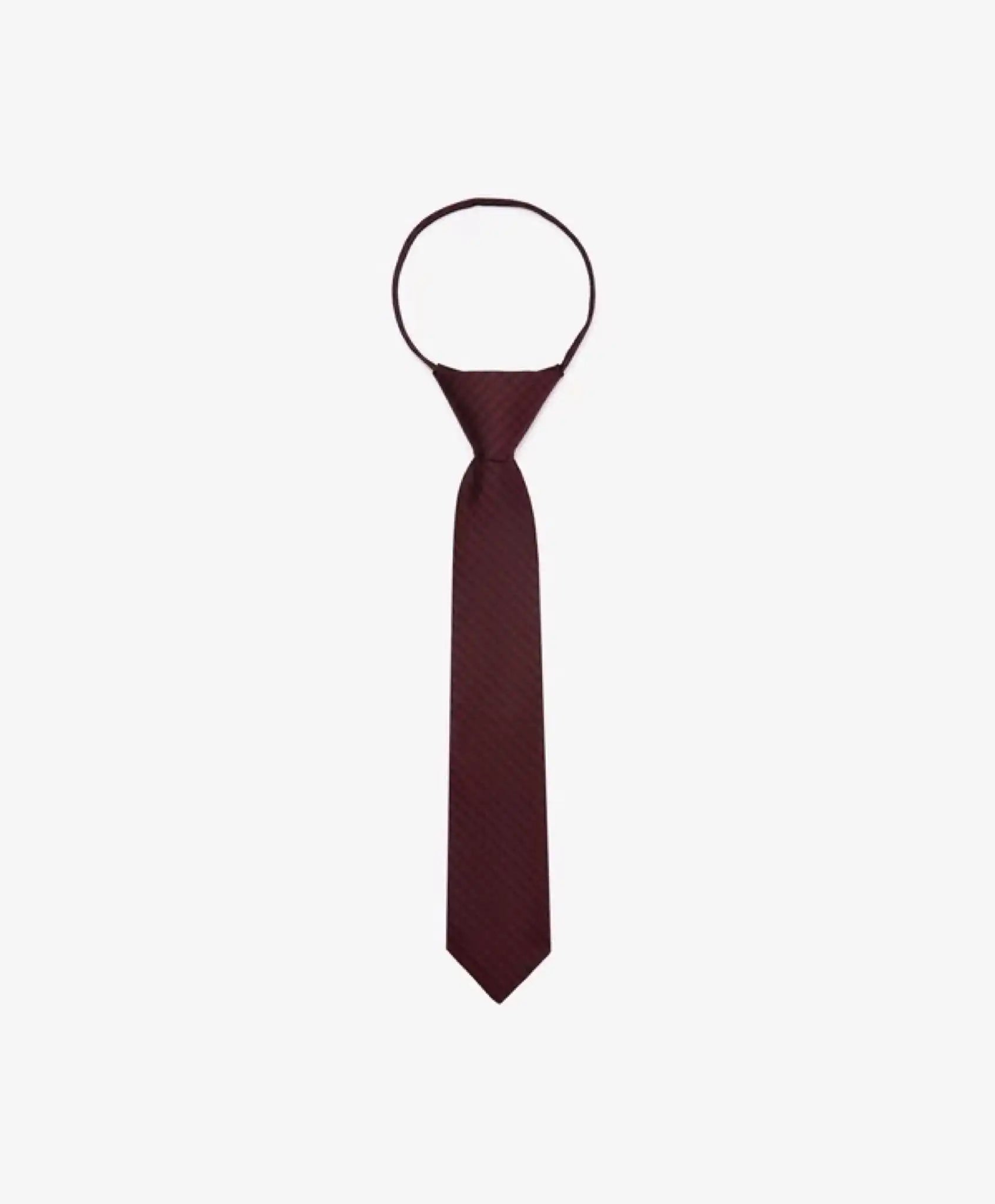 Nu mai este nevoie să legați cravata în fiecare zi! Acest model dispune de un sistem de fixare cu clemă, astfel încât copilul o poate pune singur. Cravata în carouri bordo adaugă contrast și diversifică combinațiile clasice. Se potrivește perfect cu o cămașă uni și pantaloni eleganți.