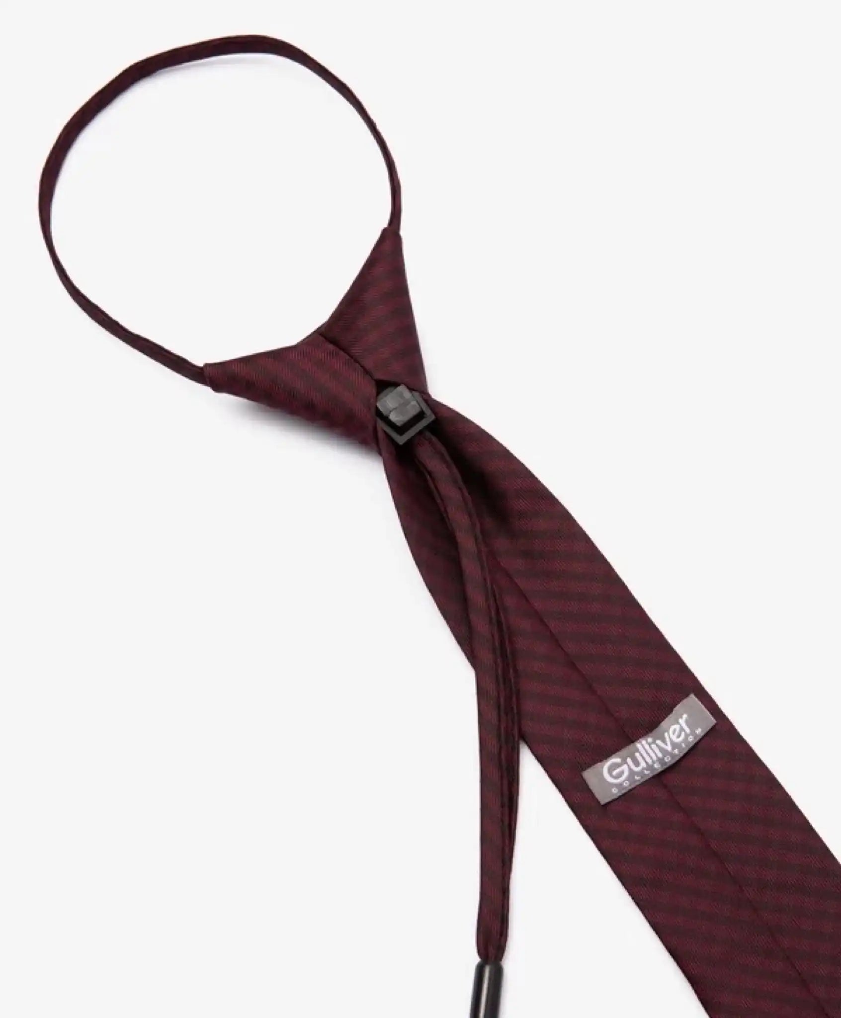 Cravată cu clips, model în carouri, bordo, pentru băiat, Gulliver