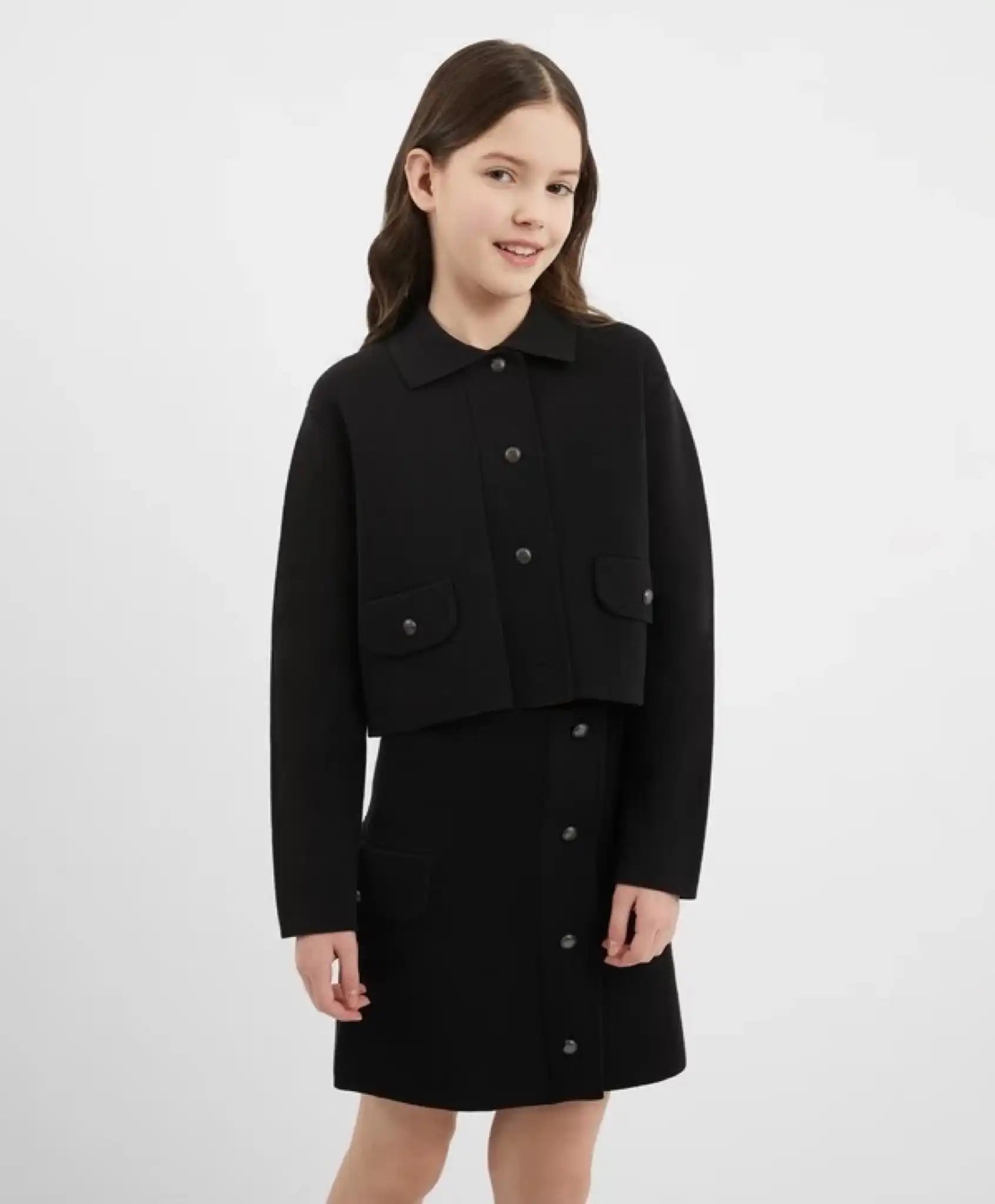 Jachetă tricotată cu închidere cu nasturi metalici, neagră, pentru fată, Gulliver